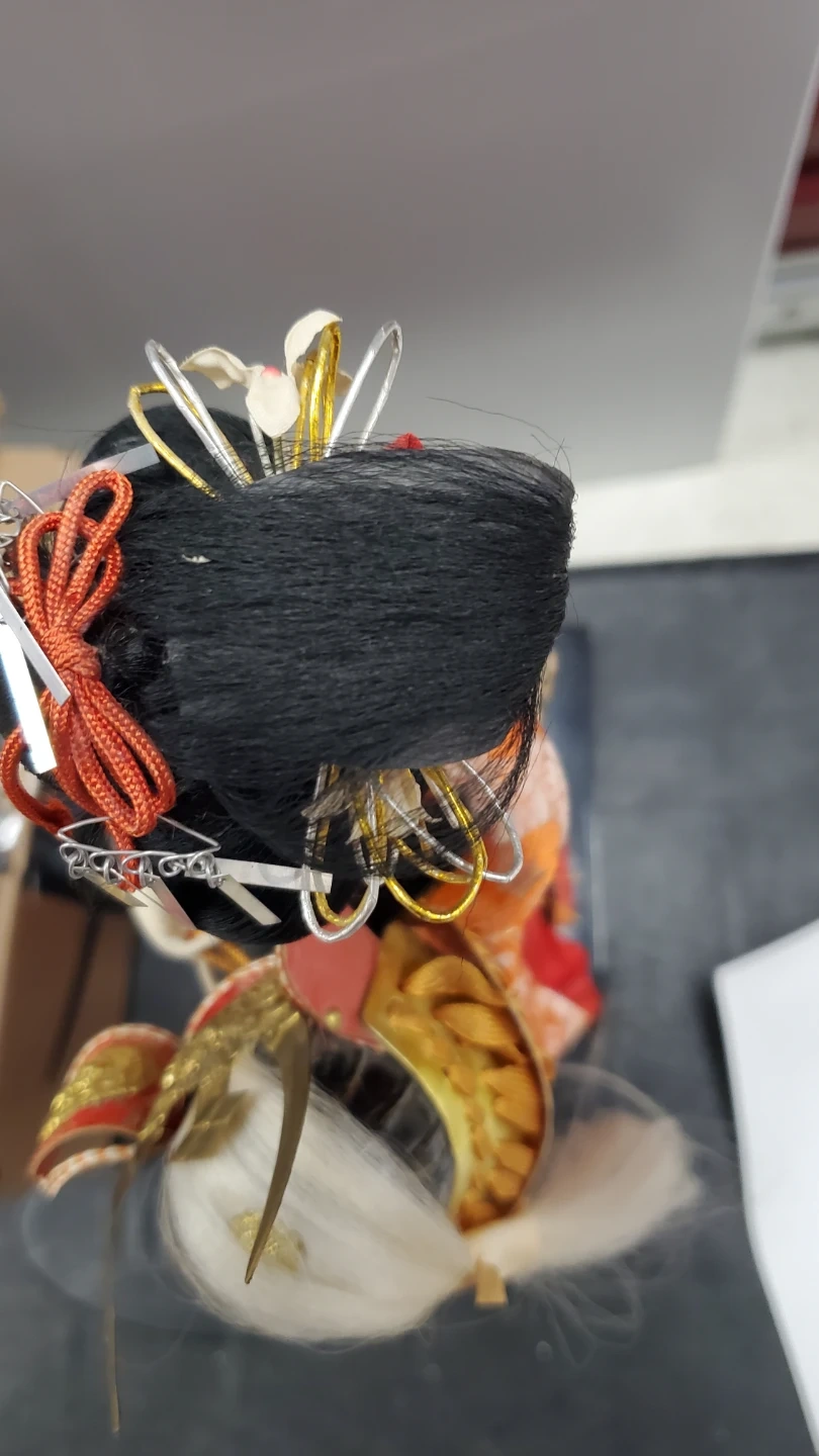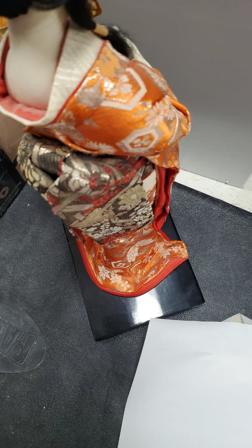 This is a vintage Japanese geisha doll from Japan during the Korean War era.
