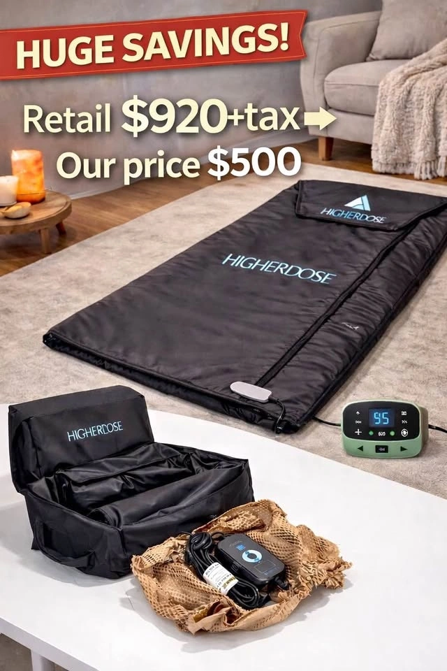 New HigherDOSE Infrared Sauna Blanket available! Experience home spa therapy with this portable infrared sauna blanket designed to help you relax, sweat, and recover after long days or workouts. Features: Infrared heat therapy technology, Helps support relaxation and body detox, Plush thermal heated blanket design, Size: 71 x 71 inches, Color: Green and Black, Portable and easy to use at home. Perfect for: Relaxation, Recovery therapy, Home wellness routine.