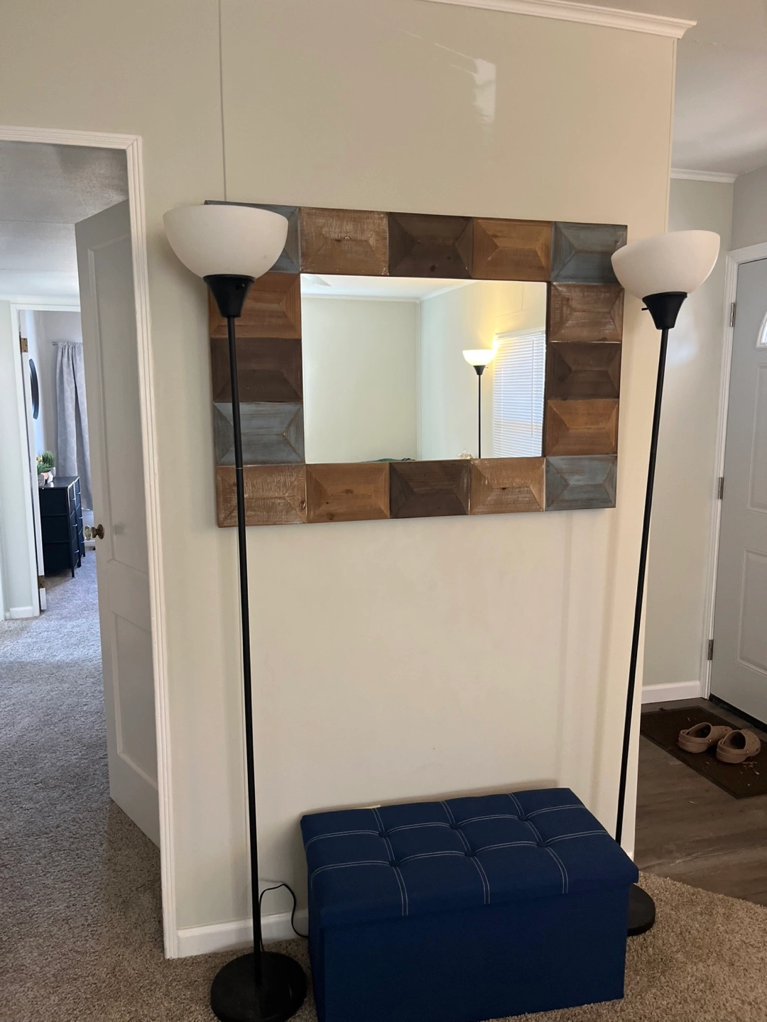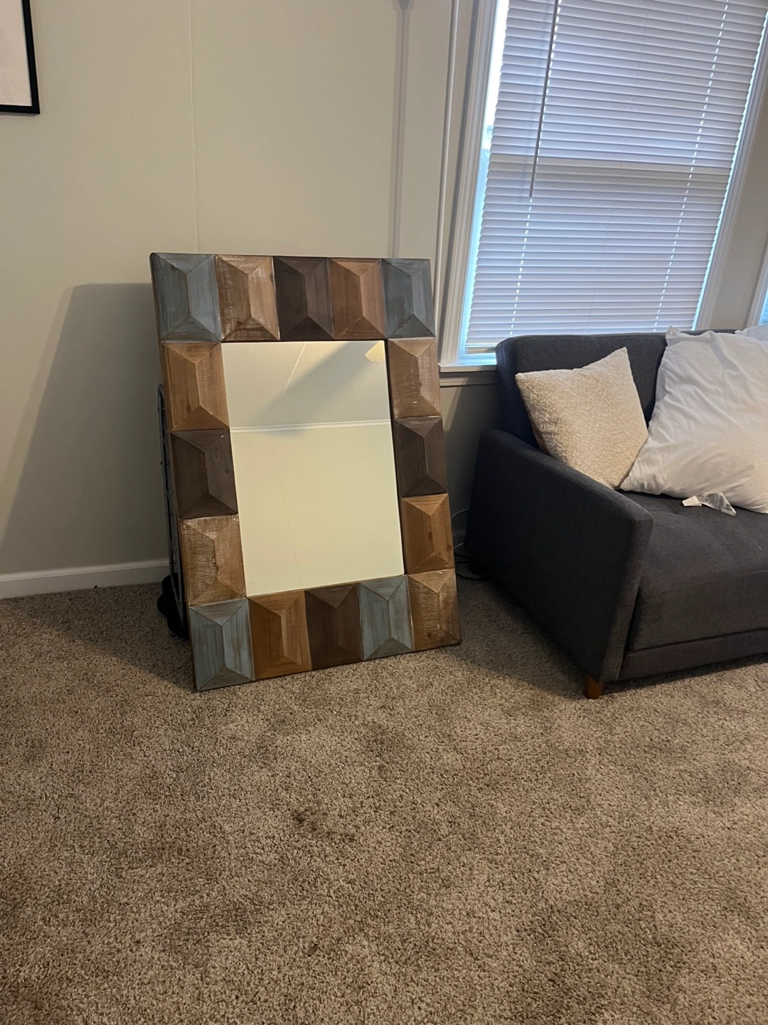 Large rectangular mirror. Multi-toned wood frame. Nice accent piece for any home. Good condition. Pick-up only.