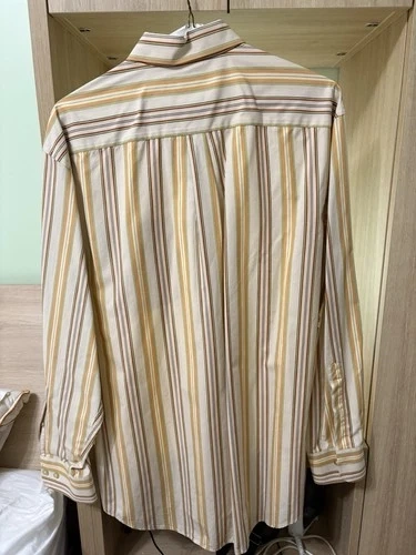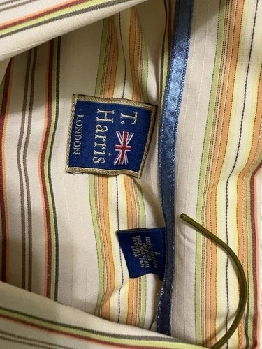 This T Harris London Striped Dress Shirt is a stylish and versatile addition to any man's wardrobe. Made from 100% cotton in a woven fabric, this shirt features a classic collared neckline with button closure, suitable for both casual and business occasions. The multicolor striped pattern adds a touch of London flair, while the regular fit ensures comfort and sophistication. Easy to care for with machine washable properties.