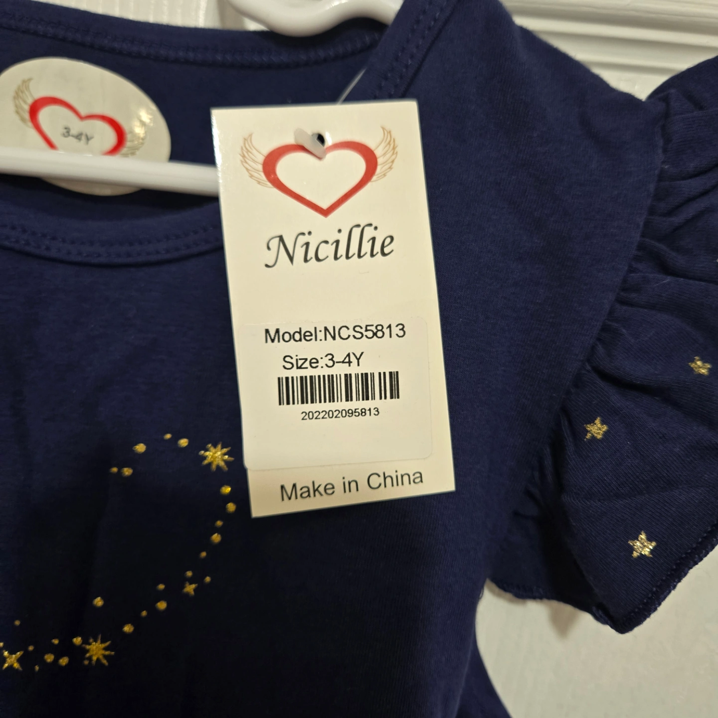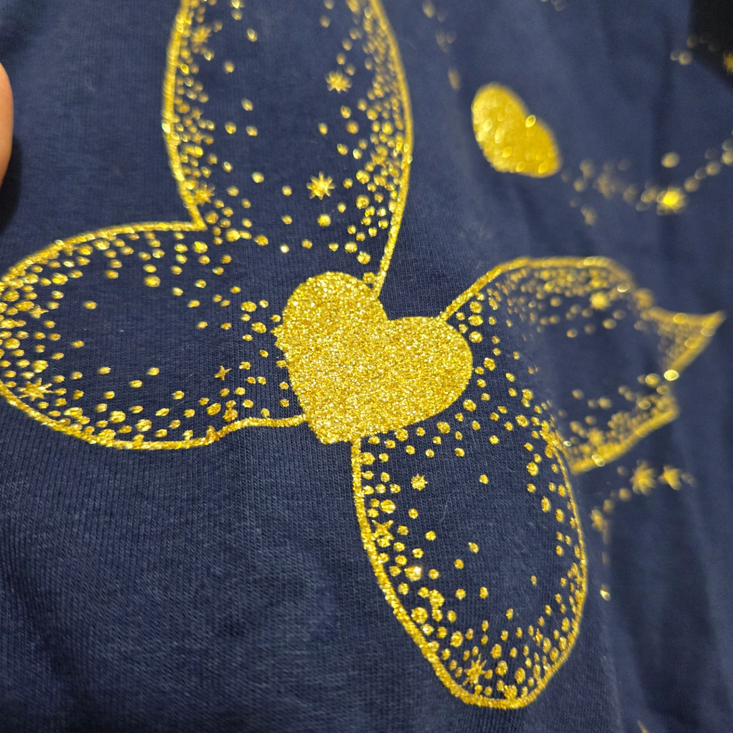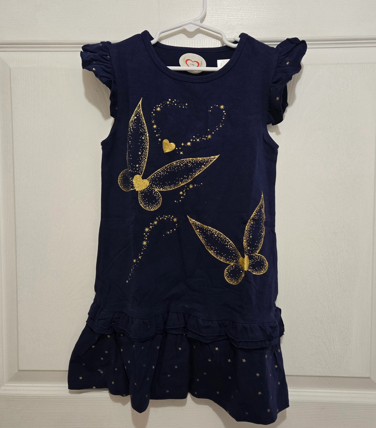 🥕New Nicillie Girls Gold Glitter Butterfly Navy Blue Dress