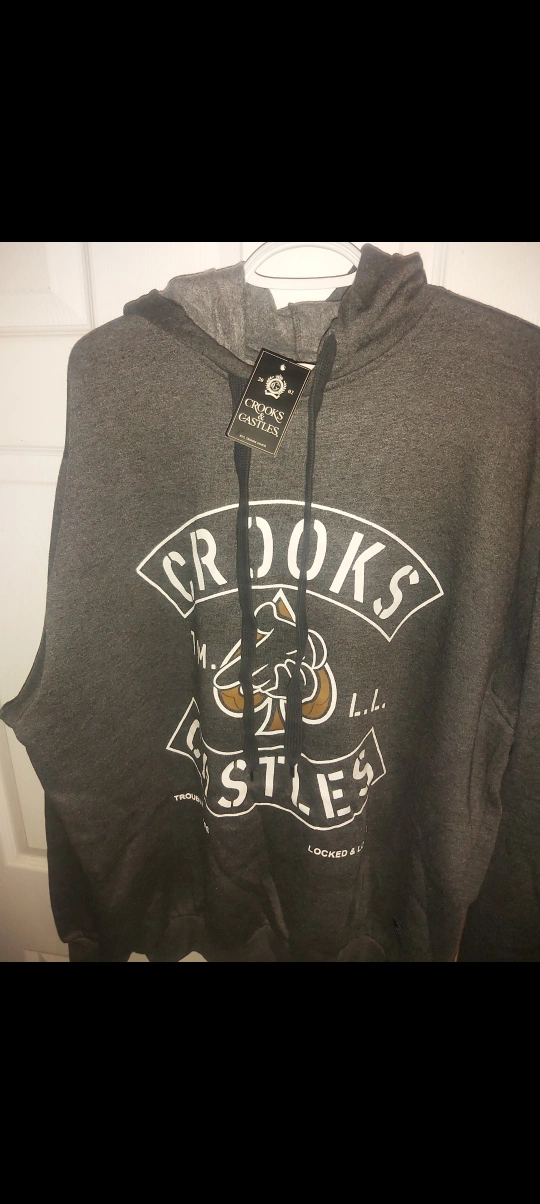 Men's grey hoodie. Features a large Crooks & Castles logo on the front. Long sleeves, drawstring hood. brand new condition.