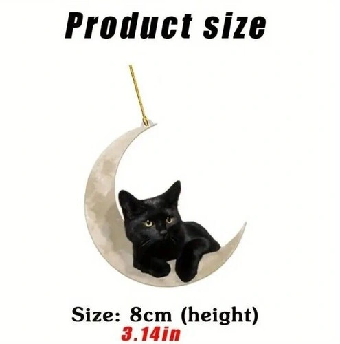 Black Cat Hanging Moon Ornament Decor