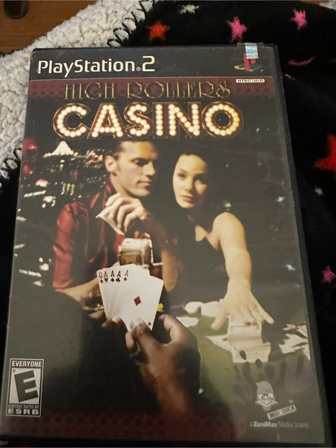 This is the High Rollers Casino game for PlayStation 2. It's rated E for Everyone by the ESRB. Mud Duck is the developer, a ZeniMax Media brand.