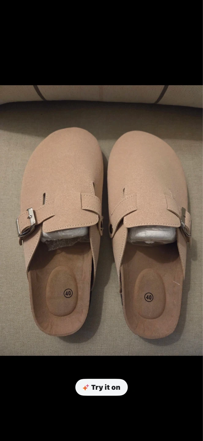 These Clogs clogs are a size 40 (women’s 8.5-9). They're a slip-on style with an adjustable buckle strap. The soles are black with a textured grip.