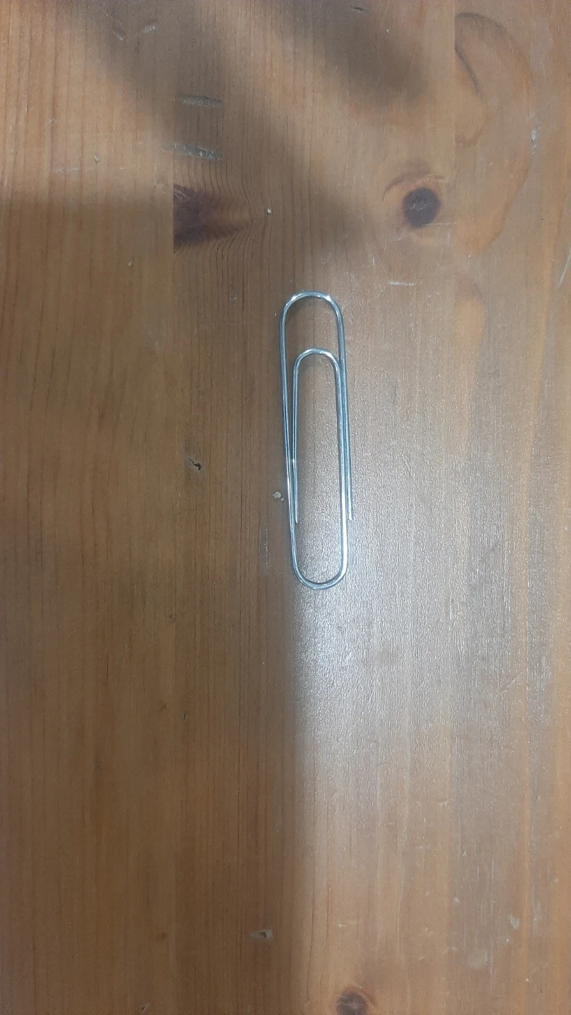 This is a standard metal paper clip. It's made of durable metal wire. This clip is great for organizing loose papers!