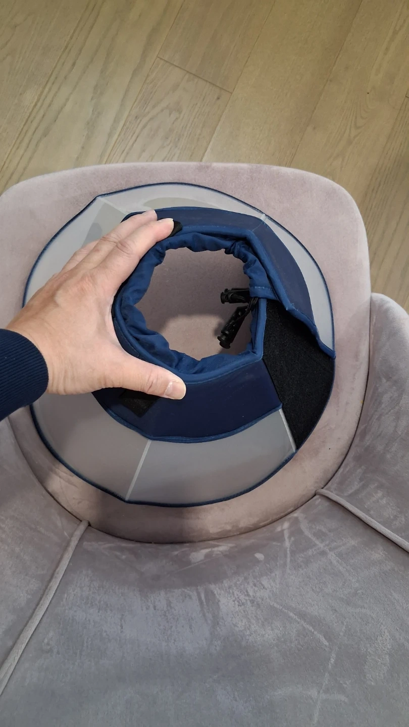 Can put your own pet neck belt onto this cone for secure fix beforehand