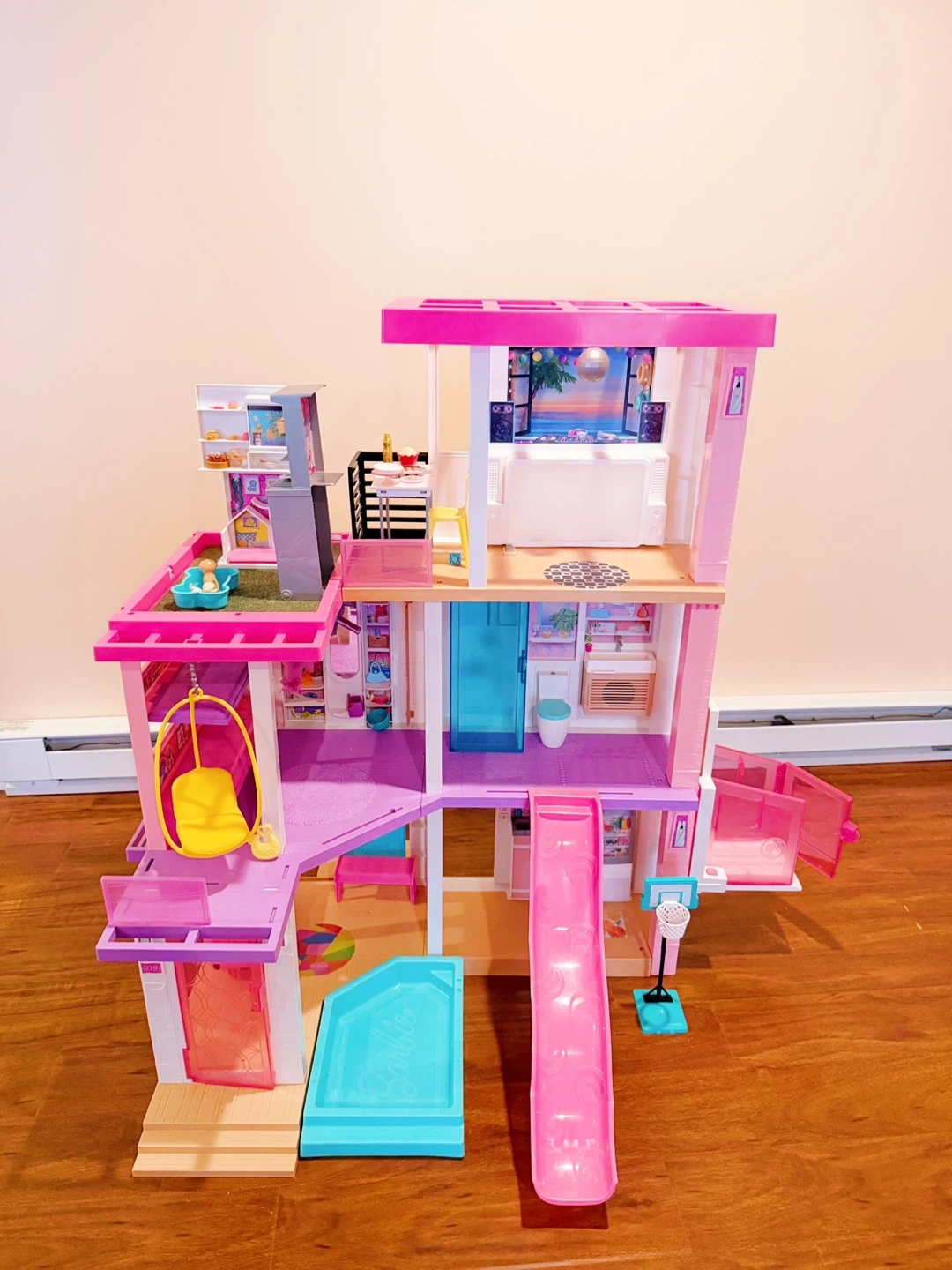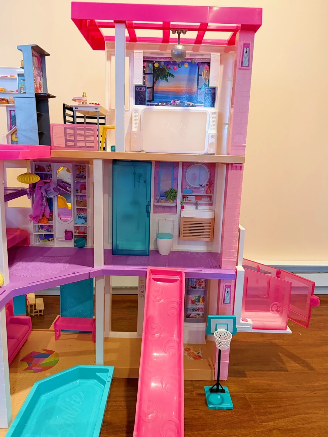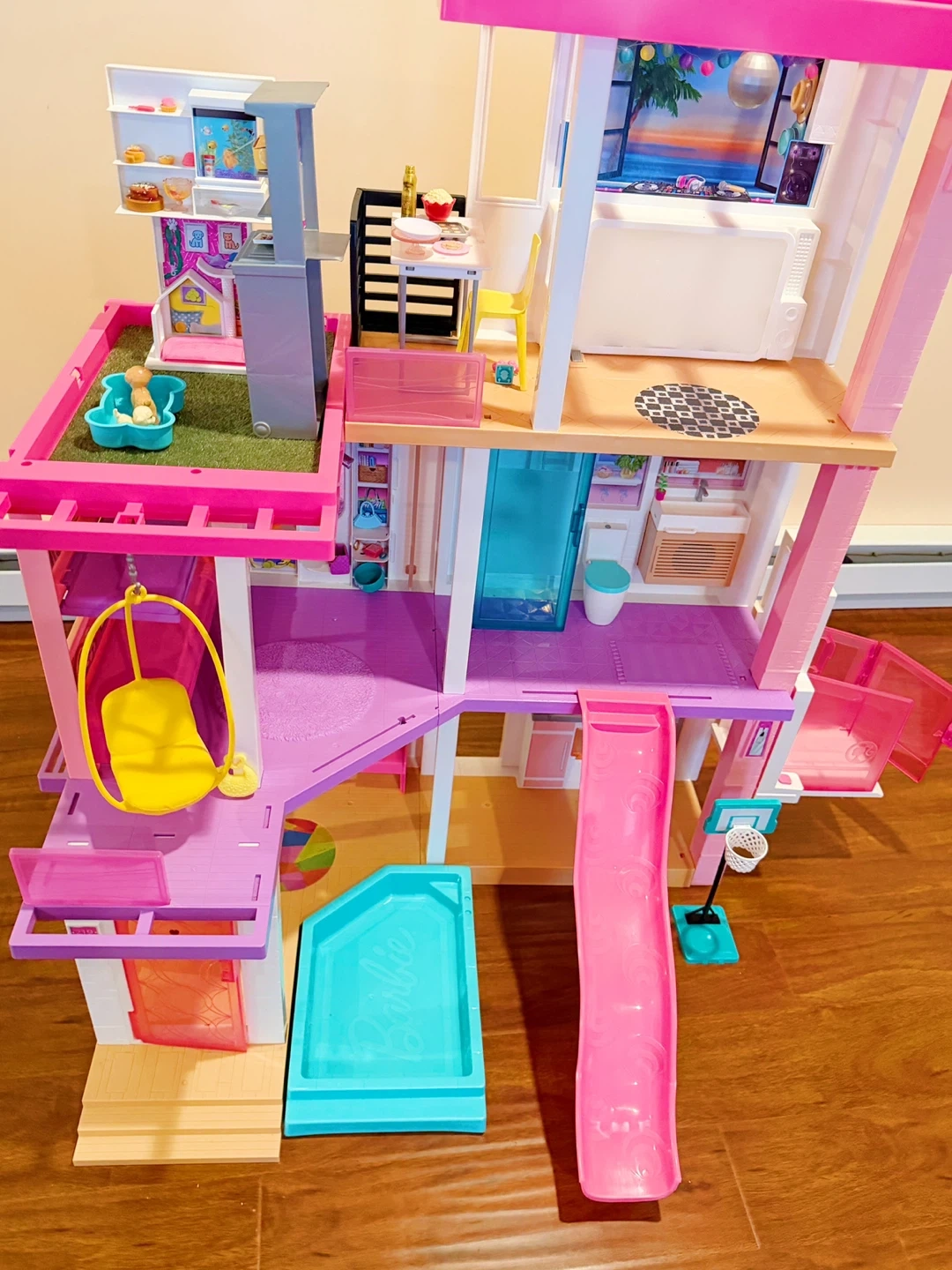 This is a multi-level Barbie Dreamhouse dollhouse. It includes furniture and accessories for imaginative play. Features include a working elevator, pool, and slide! Dolls and accessories included.