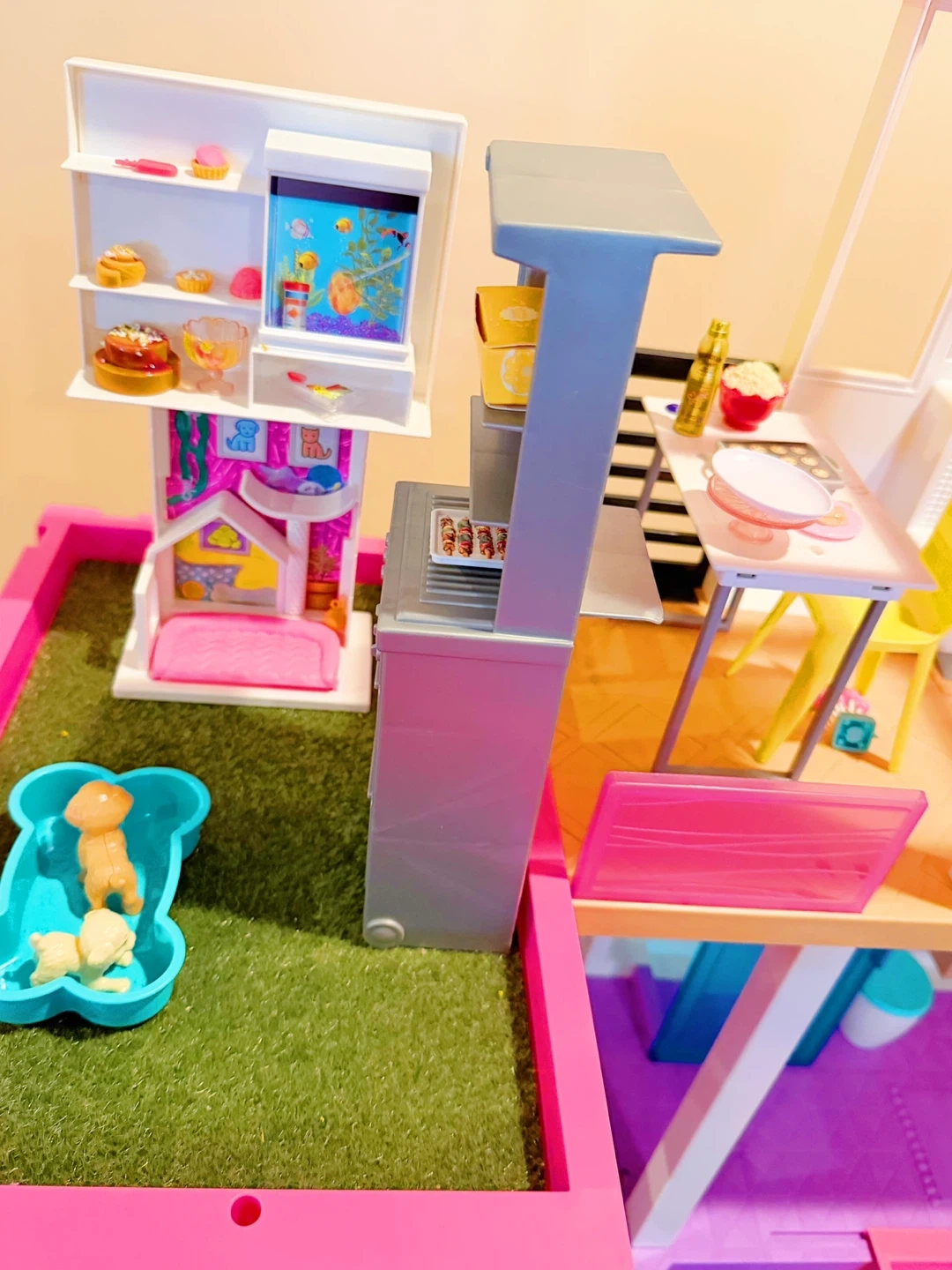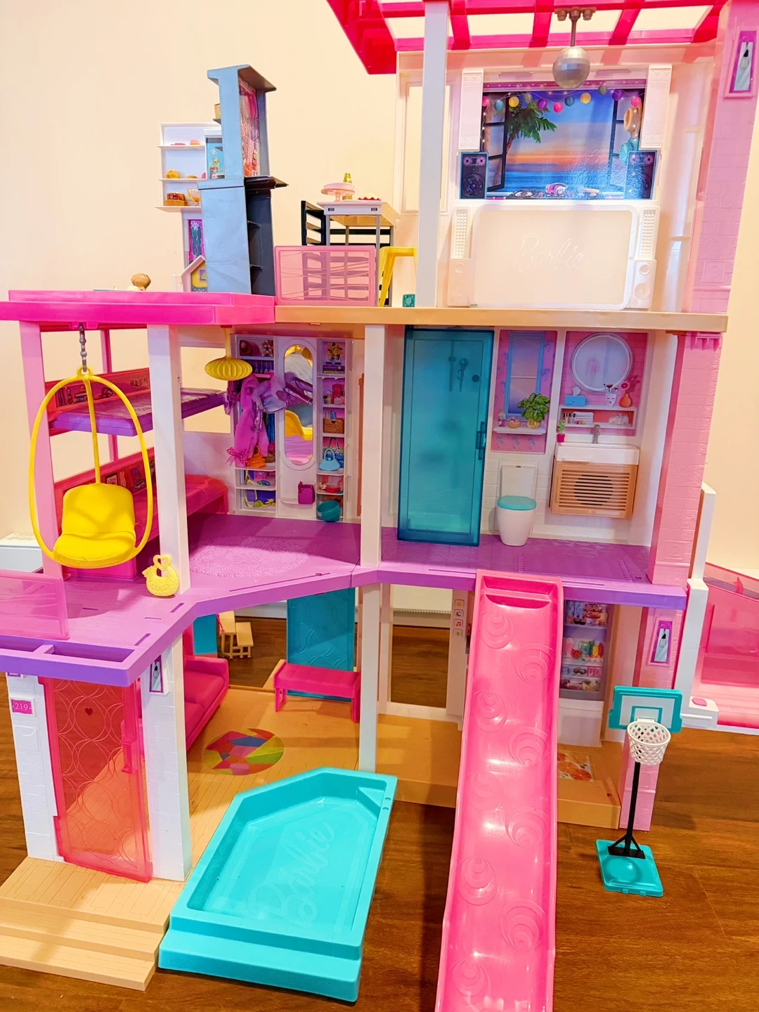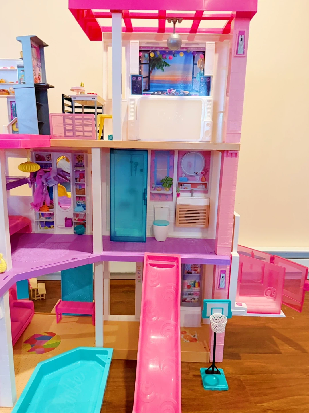 This is a multi-level Barbie Dreamhouse dollhouse. It includes furniture and accessories for imaginative play. Features include a working elevator, pool, and slide! Dolls and accessories included.