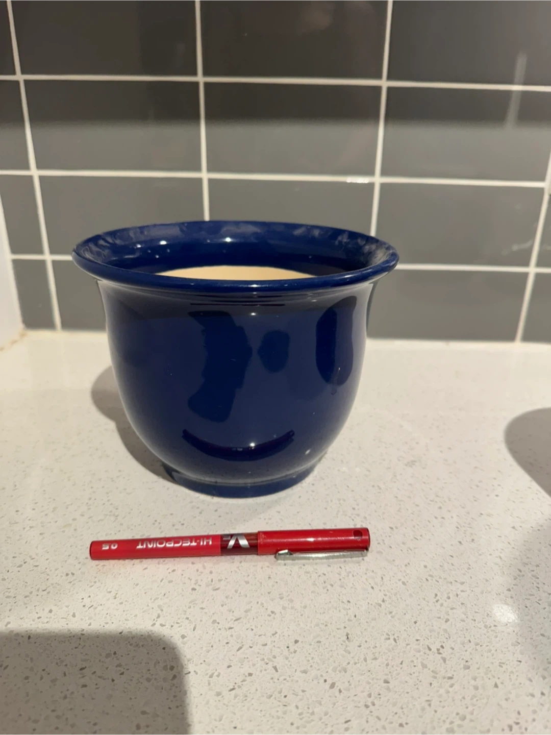 Classic blue ceramic planter pot. It's a lovely addition to any indoor or outdoor space. It's made of durable ceramic material. This pot is perfect for housing your favourite plants!