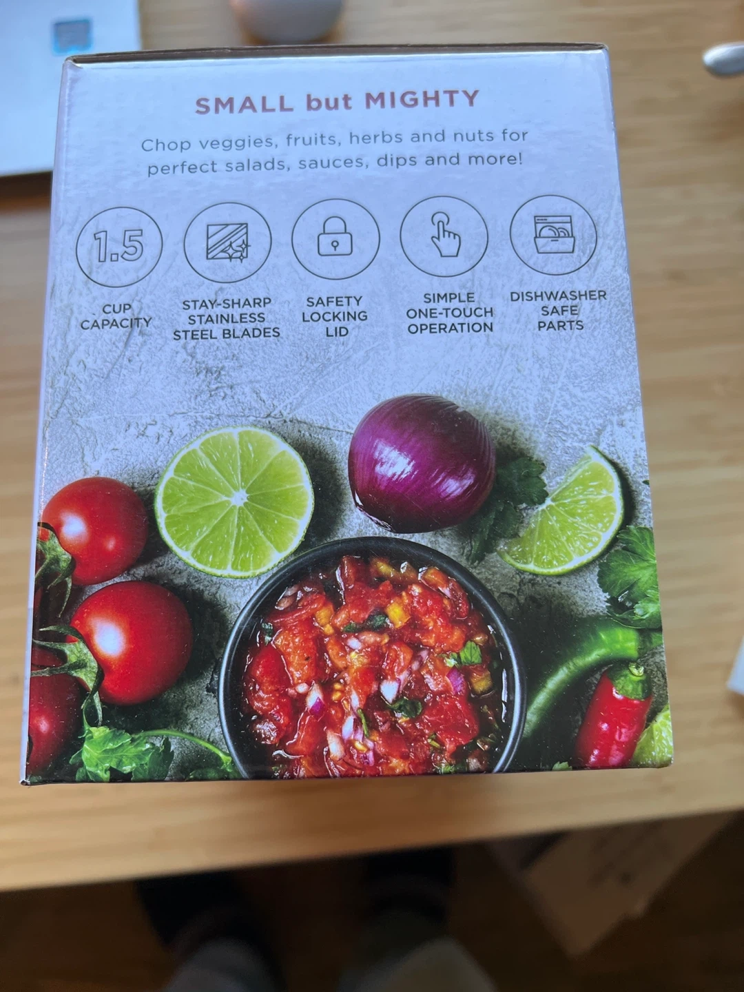 I'm selling a Chefman Mini Food Processor/Chopper. It's perfect for food prep! It has a 1.5 cup capacity, stay-sharp stainless steel blades, safety locking lid, simple one-touch operation and dishwasher safe parts. It comes in the original box