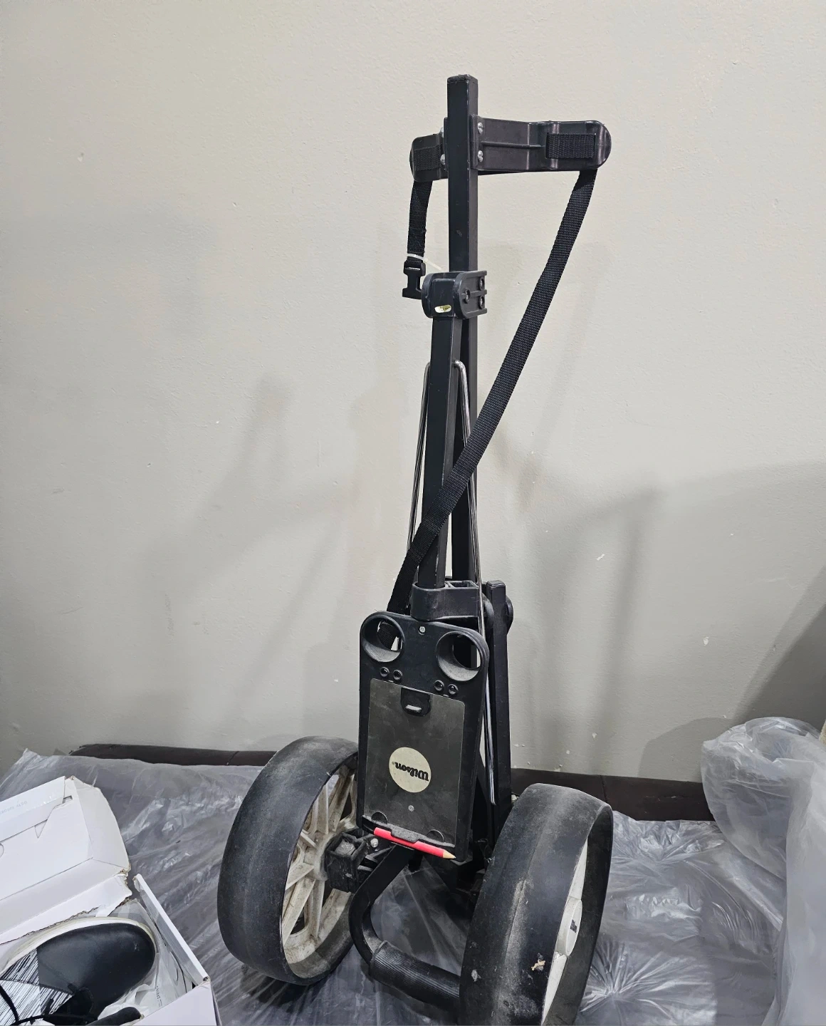 -Wilson Folding 2 Wheel Push Pull Golf Club Cart: A lightweight trolley with a swivel scoreboard for easy maneuverability on the course.