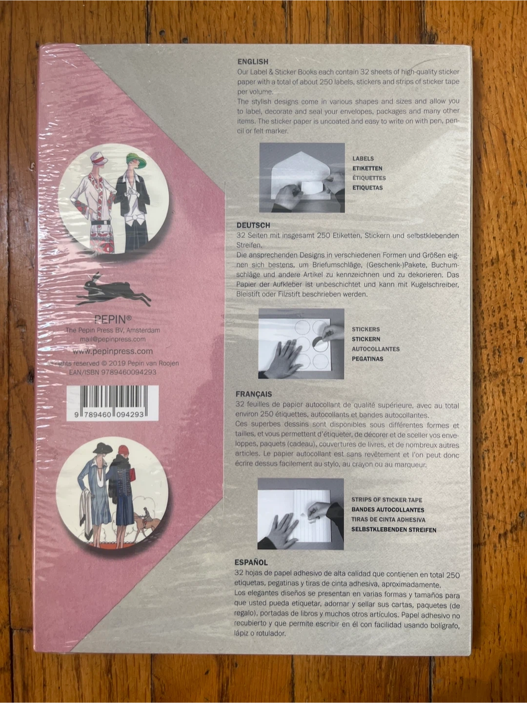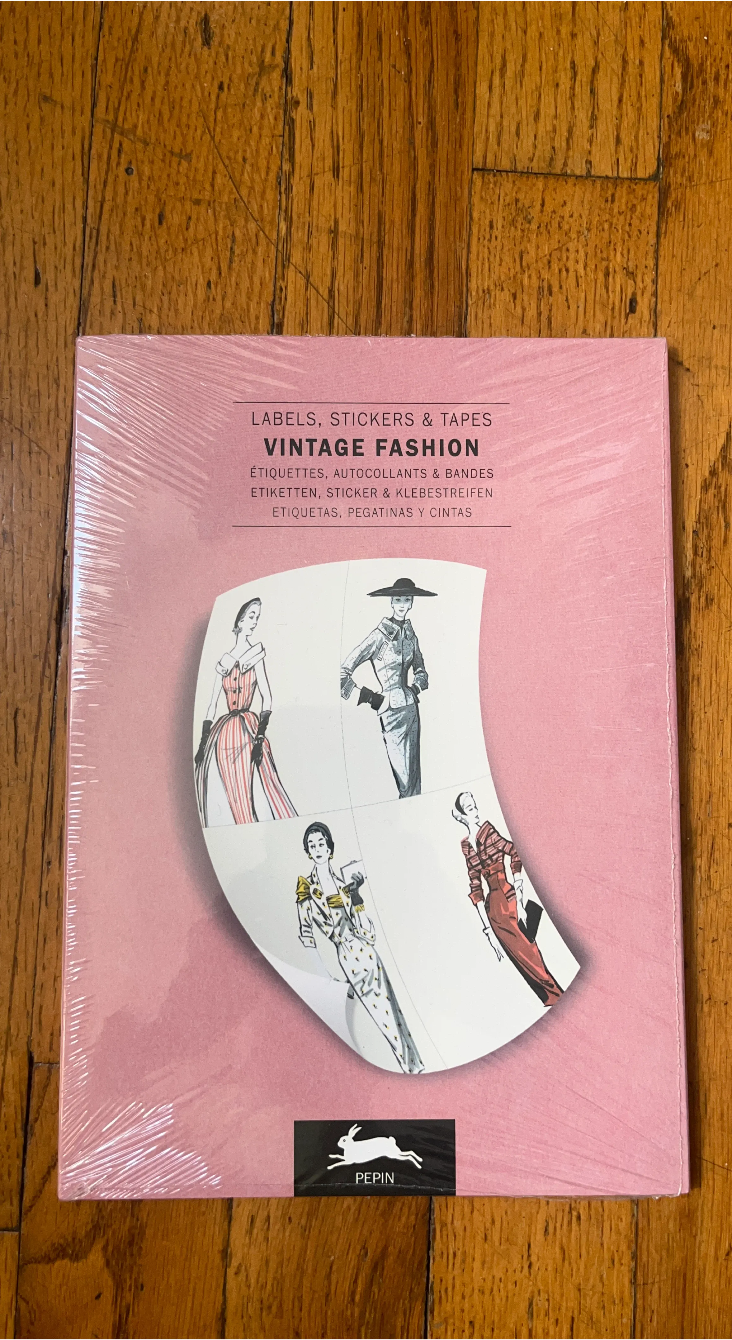 Vintage fashion design sticker book. 32 sheets of about 250 labels, stickers and strips of sticker tape. Use to decorate, label and seal envelopes/packages. Paper is un-coated and easy to write on with pen, pencil or felt marker. Brand new in original wrapping.