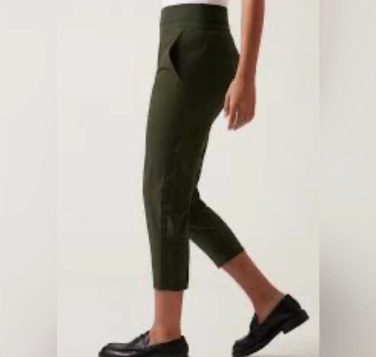 NWT Athleta Nolita Slim Tapered Crop Pant Color: Aspen Olive Sz 12 T with Pockets
