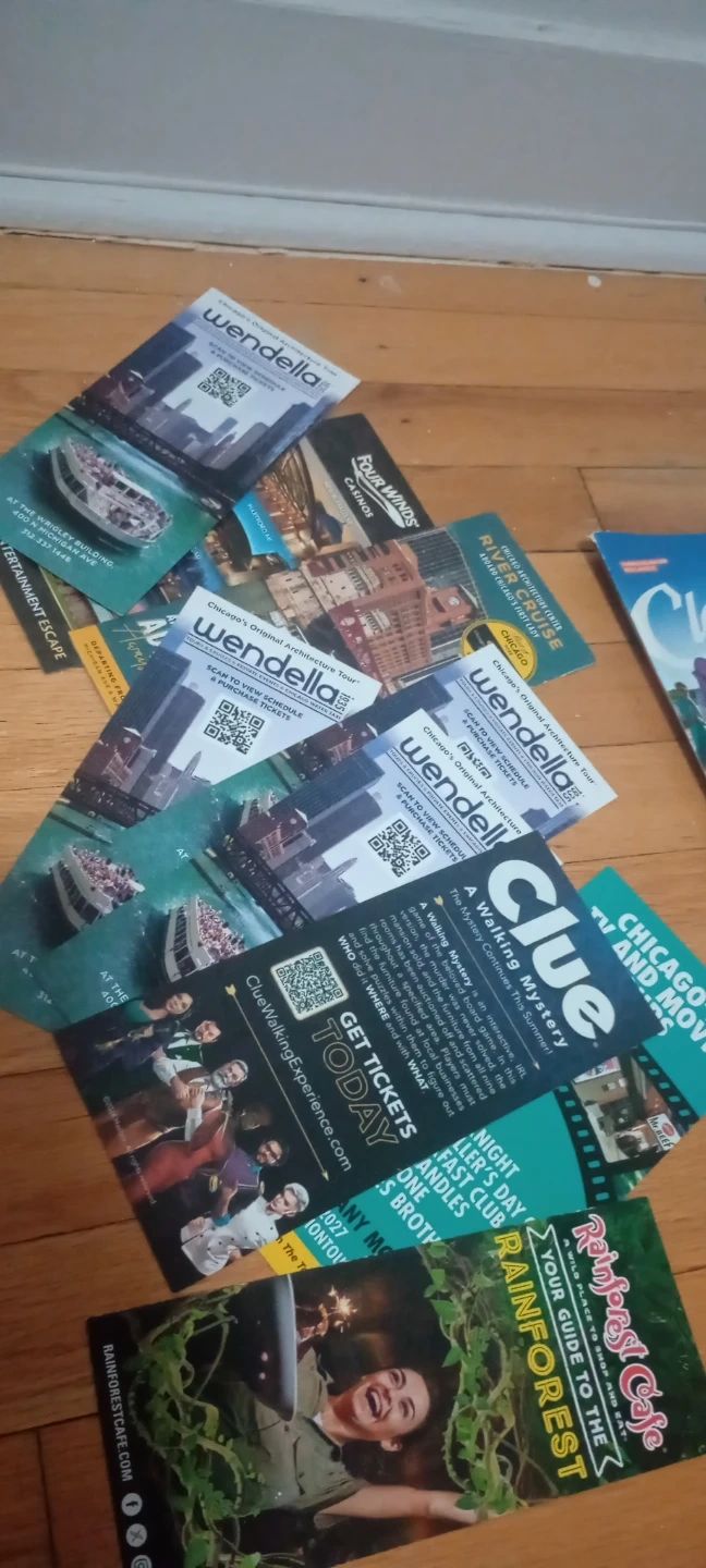 This lot includes various travel brochures and magazines focused on Chicago and related areas. You'll find information on attractions, dining, and local culture. Perfect for planning a trip or exploring the city's offerings! Can use for projects pictures cutting