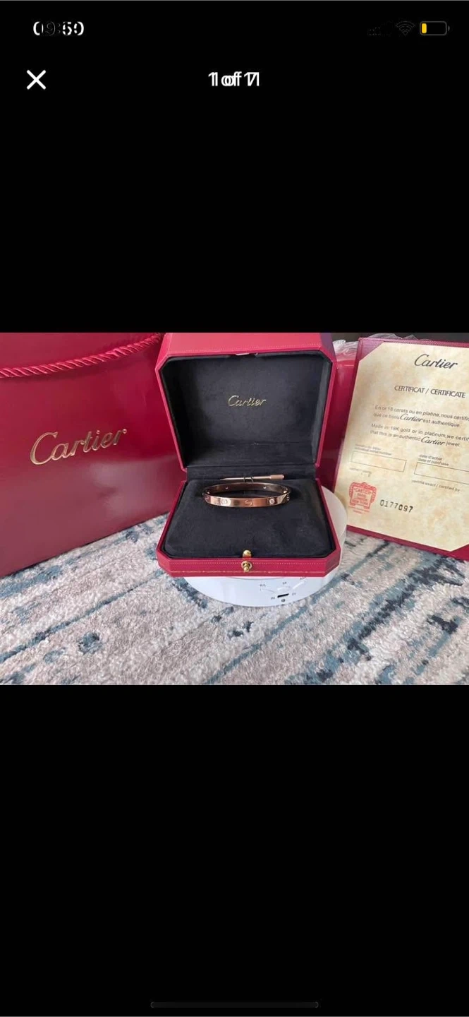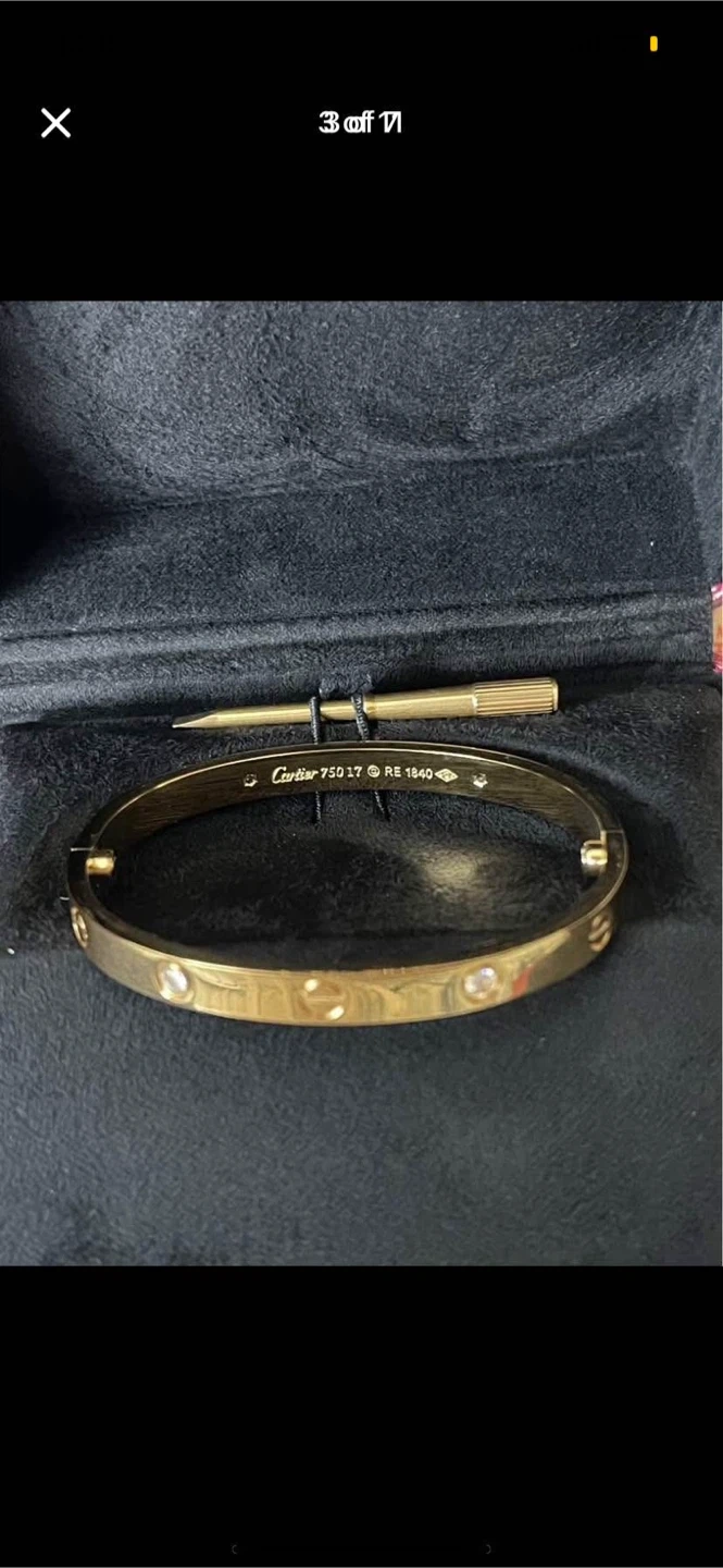 Gold cartier bracelet, comes with box, papers, and screw driver,