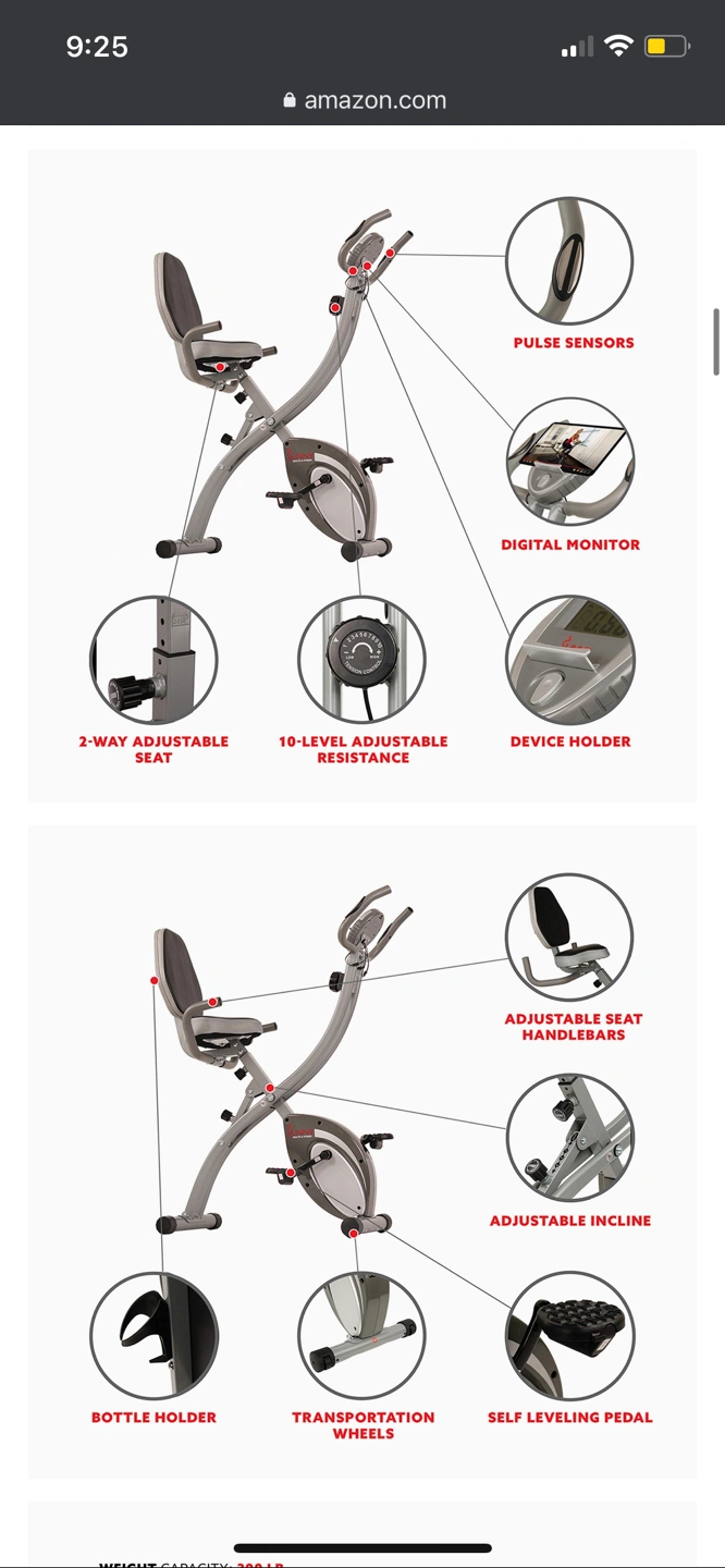 https://www.amazon.com/Sunny-Health-Fitness-Recumbent-Monitoring/dp/B07BDPDZWD