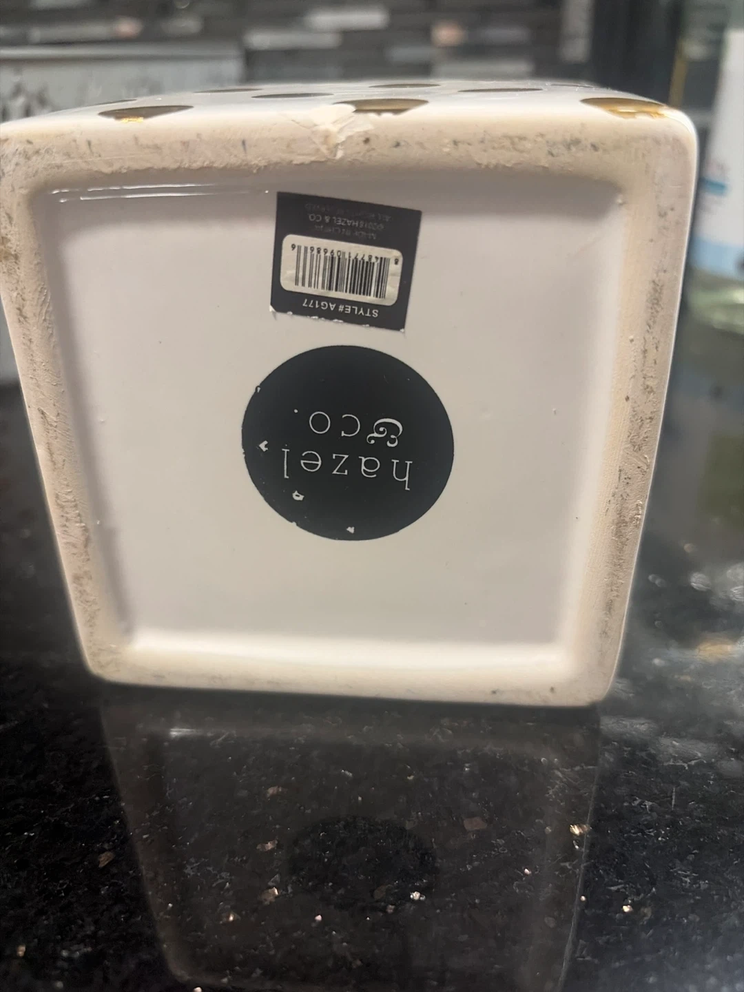 Hazel & Co. White Ceramic Gold Polka Dot Pot