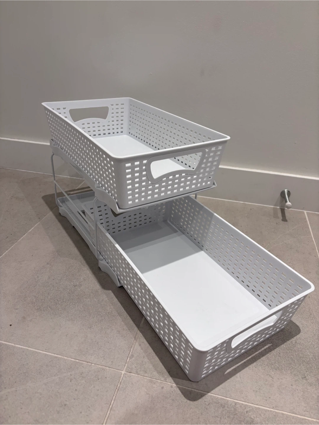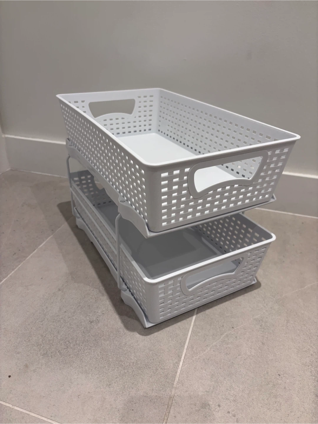Two White 2-Tier Drawer Organizer Baskets