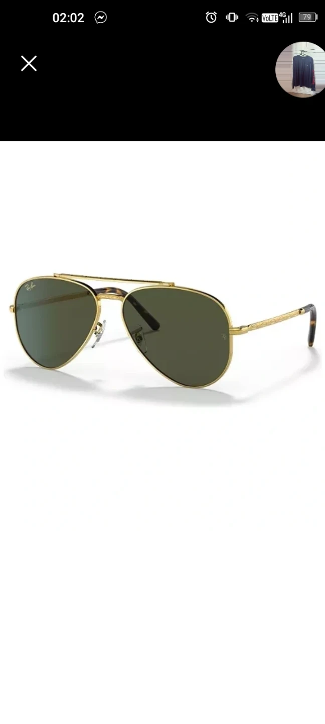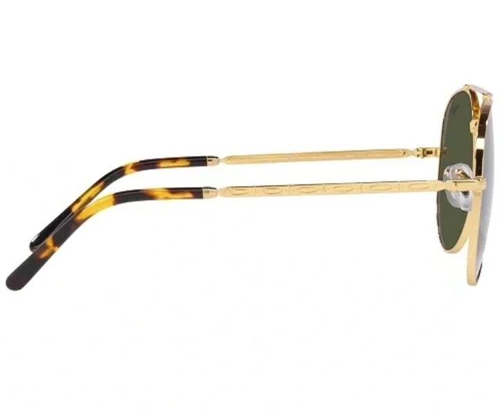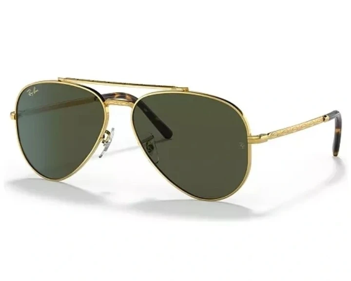 Classic Ray-Ban aviator sunglasses. Features a gold metal frame with green tinted lenses. Tortoiseshell pattern on the temple tips. They're a stylish accessory for everyday wear!