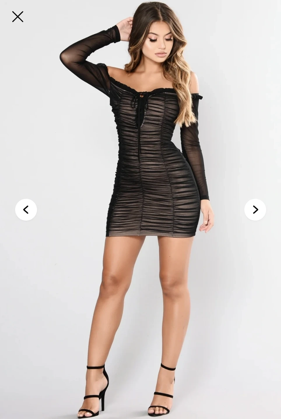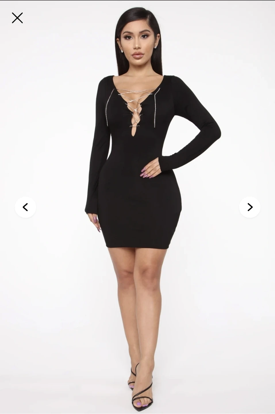 Here's a cute black mini dress from Fashion Nova! It's perfect for a night out or a special occasion. It's in great condition! (Never worn, just washed)