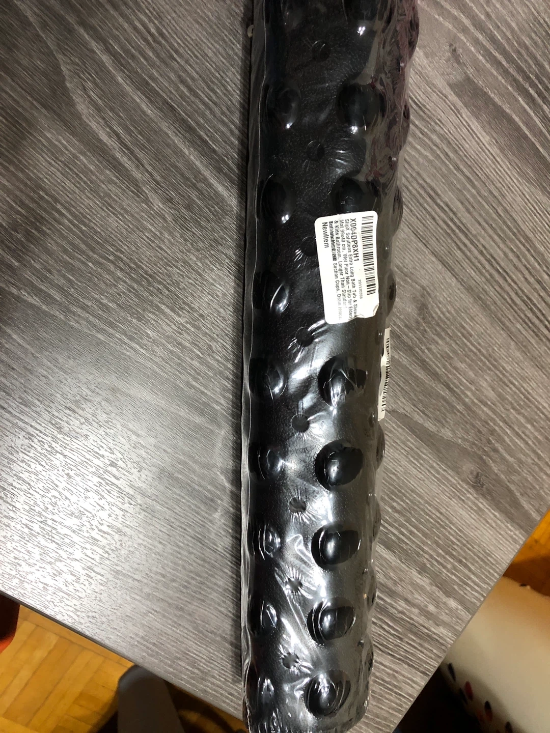 I'm selling a new Slipsolutions extra long bath and shower mat. It's black and measures 39x90 cm. It's designed for wet floors and is non-slip, with suction cups and drain holes. Perfect for the bathtub or shower!