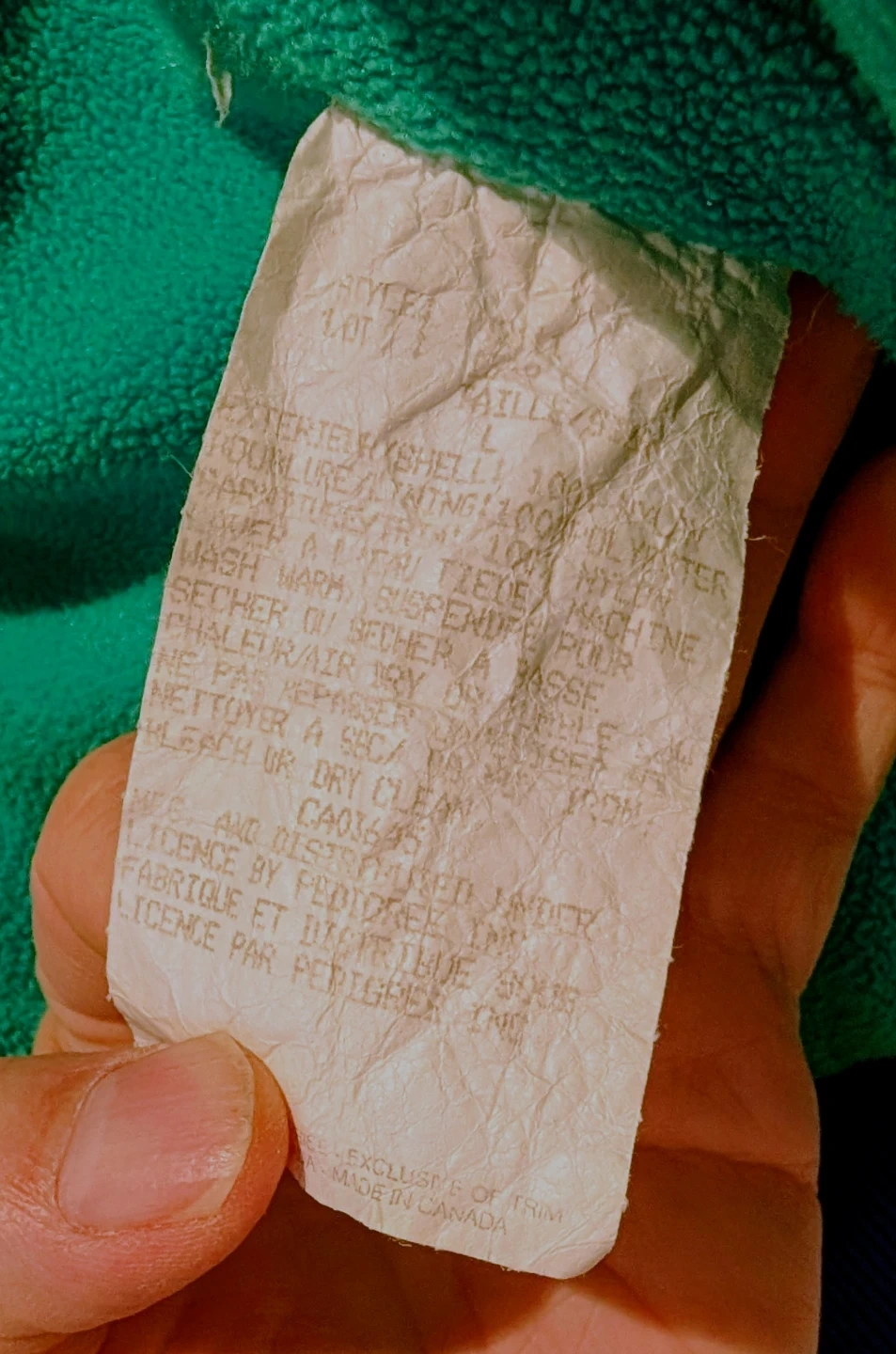 Patagonia windbreaker jacket in a blue exterior, and light green fleece lining. Size is large. The exterior shell is 100% nylon, and the lining is 100% polyester. Made in Canada!