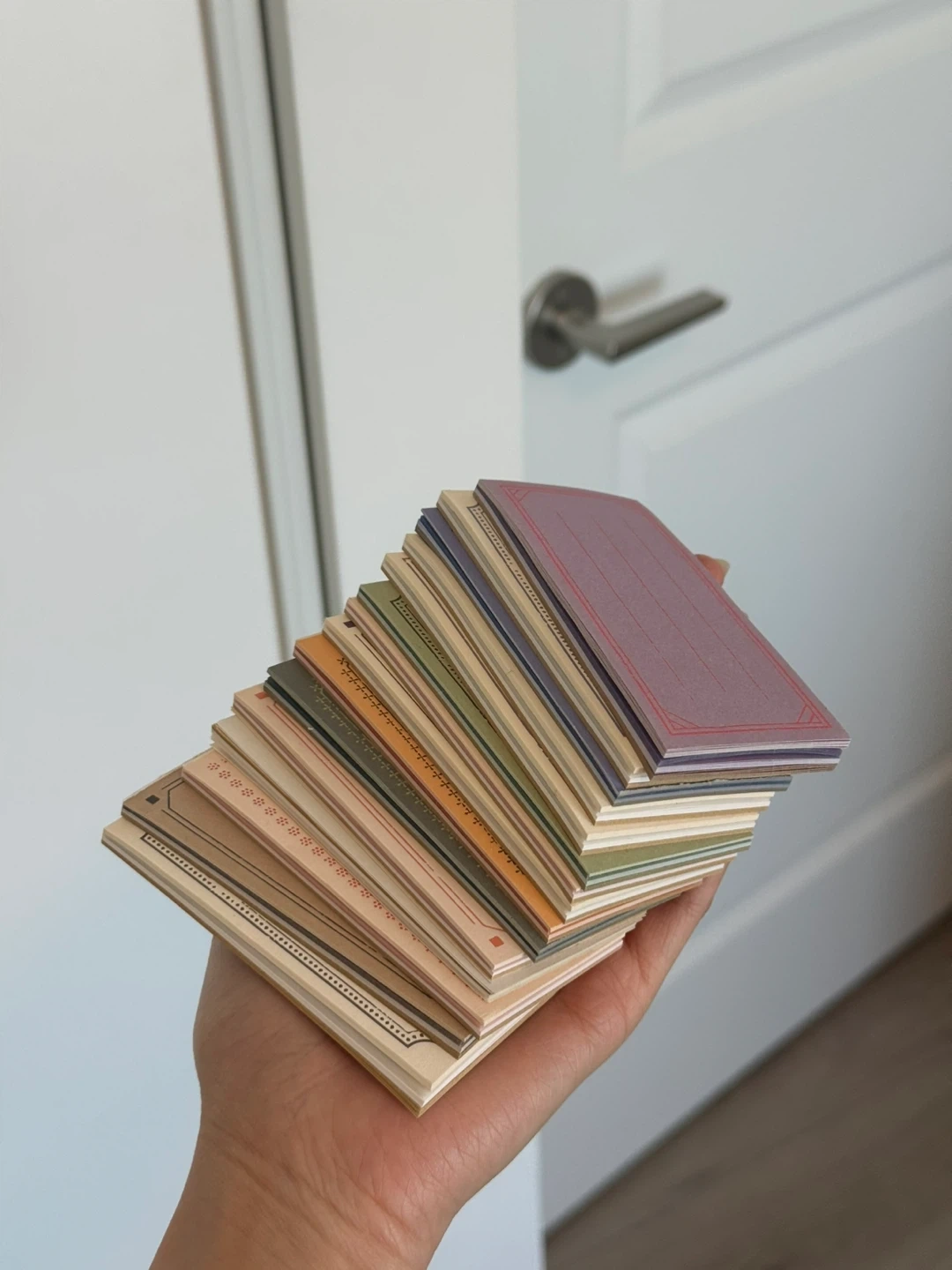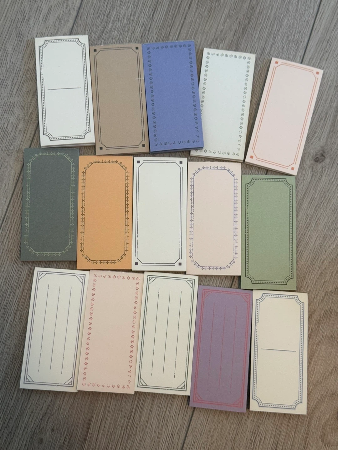 A collection of 12 mini notebooks in various pastel colours. Each notebook features decorative borders and lined or blank pages. They're great for jotting down quick notes or as small travel journals.