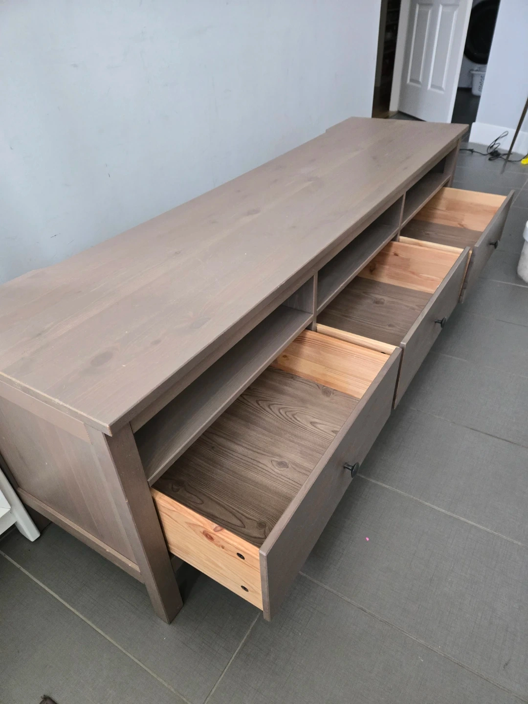 Solid wood ikea 3 drawer tv stand discontinued