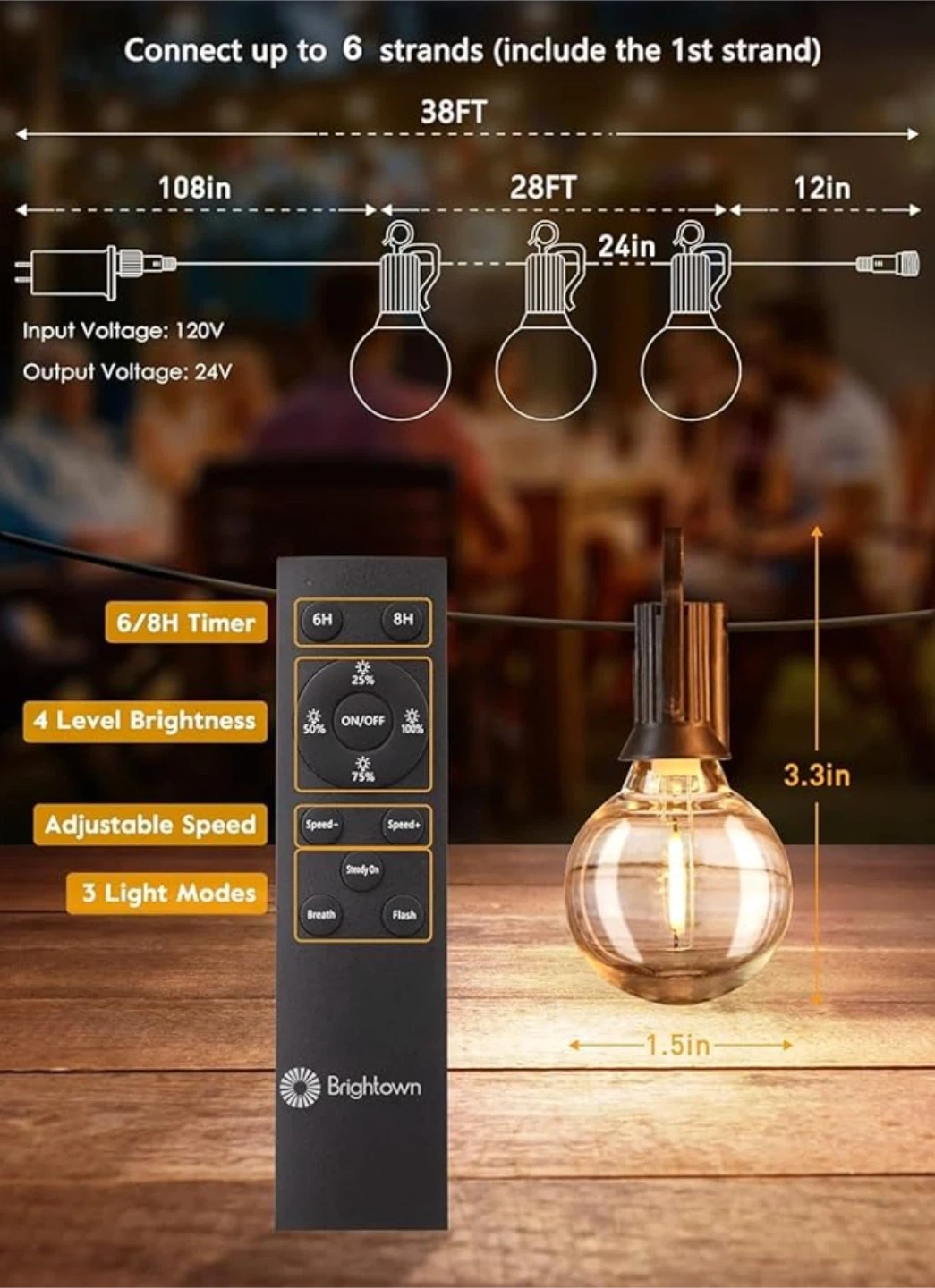 Length: 38 feet long with 15 hanging bulbs.
