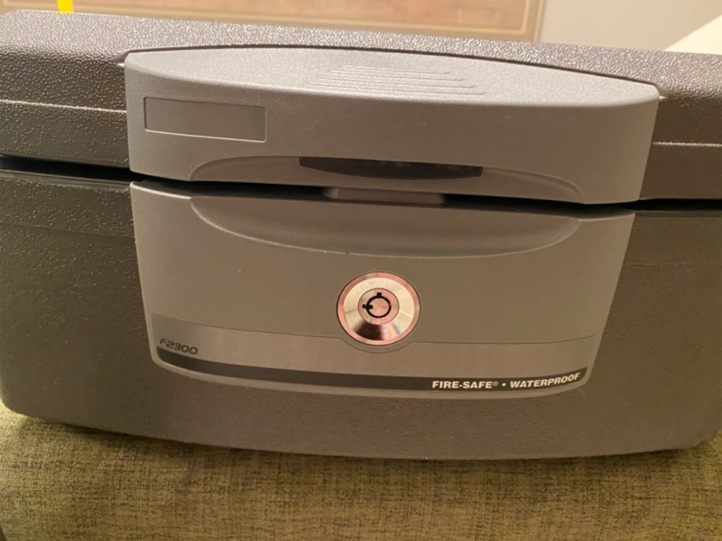 This is a SentrySafe F2300 fire-safe and waterproof storage unit. It's designed for record protection. Made in the U.S.A. and UL classified for fire resistance. 2 Tubular keys