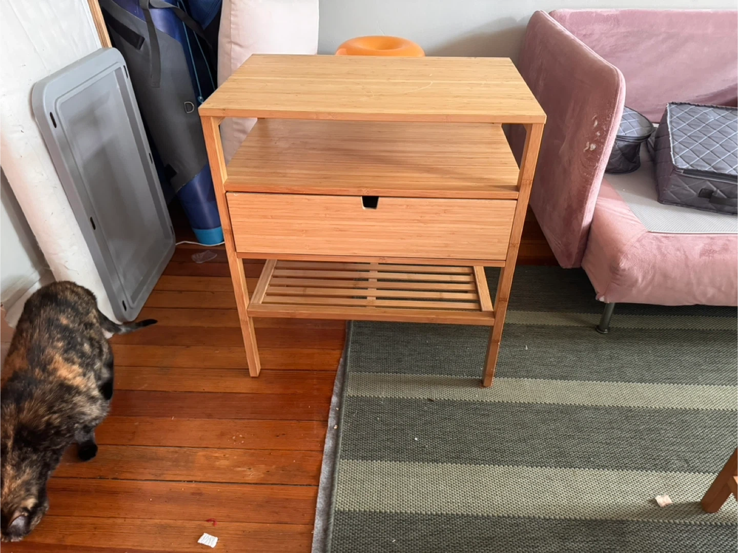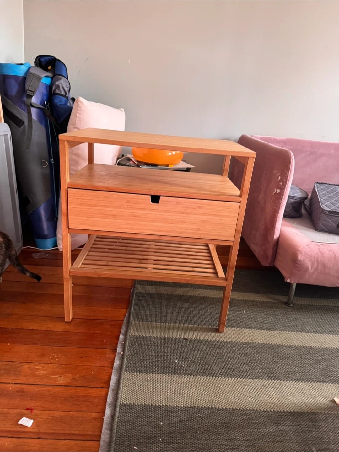 Selling a bedside table from IKEA! The Ikea model is NORDKISA. It's made of bamboo and has a huge drawer for storage. Original Price $150! The dimensions are: - 23 5/8" wide - 15 3/4" deep - 26 5/8" high