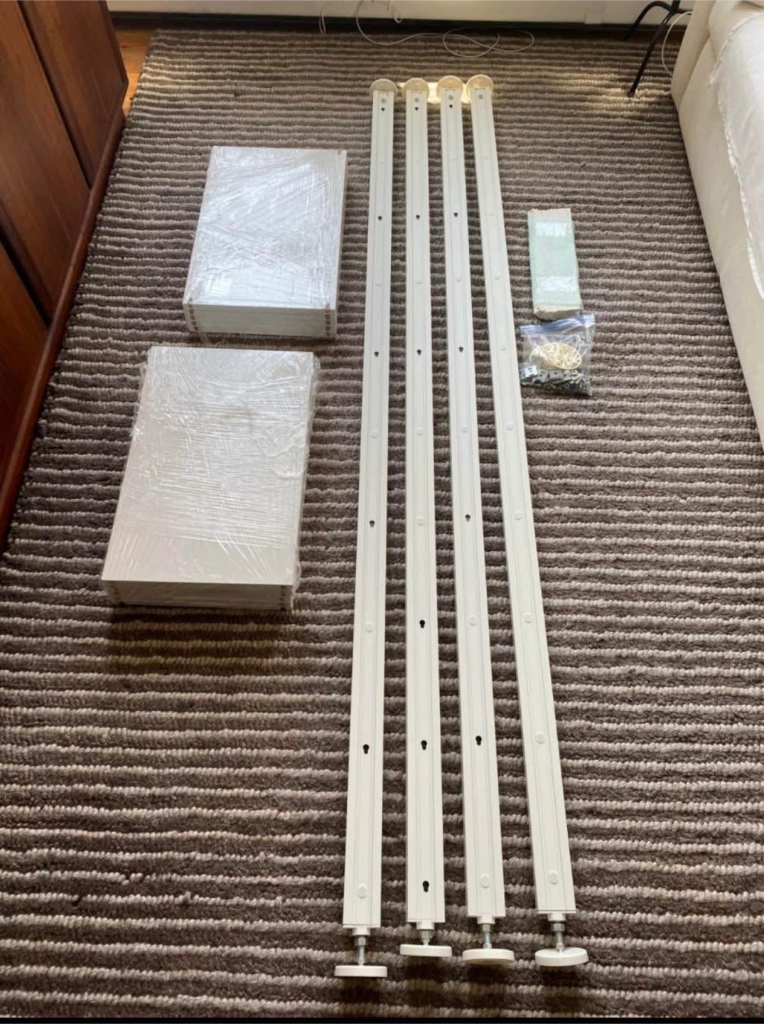 60I Elvarli Shelf System includes 11 sets of brackets plus all the hardware and padding for the posts. Comes with 11 Besta Shelves. Besta Shelf dimensions 22" long x 14" deep Besta are deeper than the Elvarli shelves.