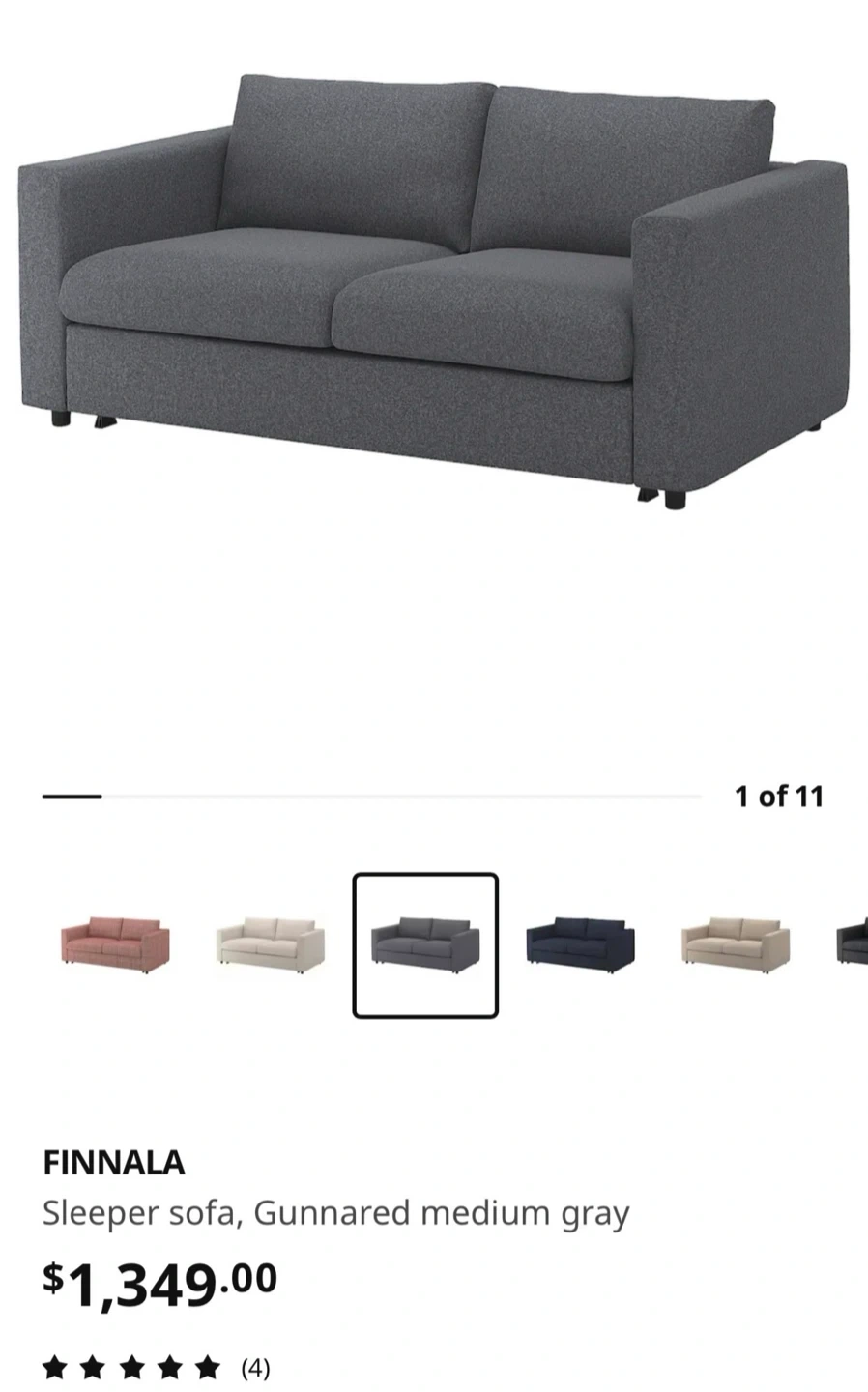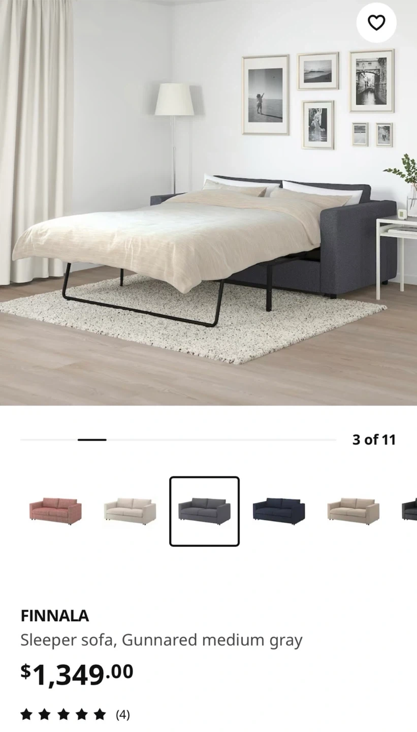 Selling an IKEA FINNALA sleeper sofa in Gunnared medium gray! It's in great condition and ready for a new home. - Width: 79 7/8 " - Depth: 38 5/8 " - Total depth folded out: 95 5/8 " - Armrest width: 5 7/8 " - Armrest height: 28 " - Seat width: 68 1/8 " - Seat depth: 21 5/8 " - Bed width: 59 7/8 " - Bed length: 79 1/2 " Originally bought for $1,349.00