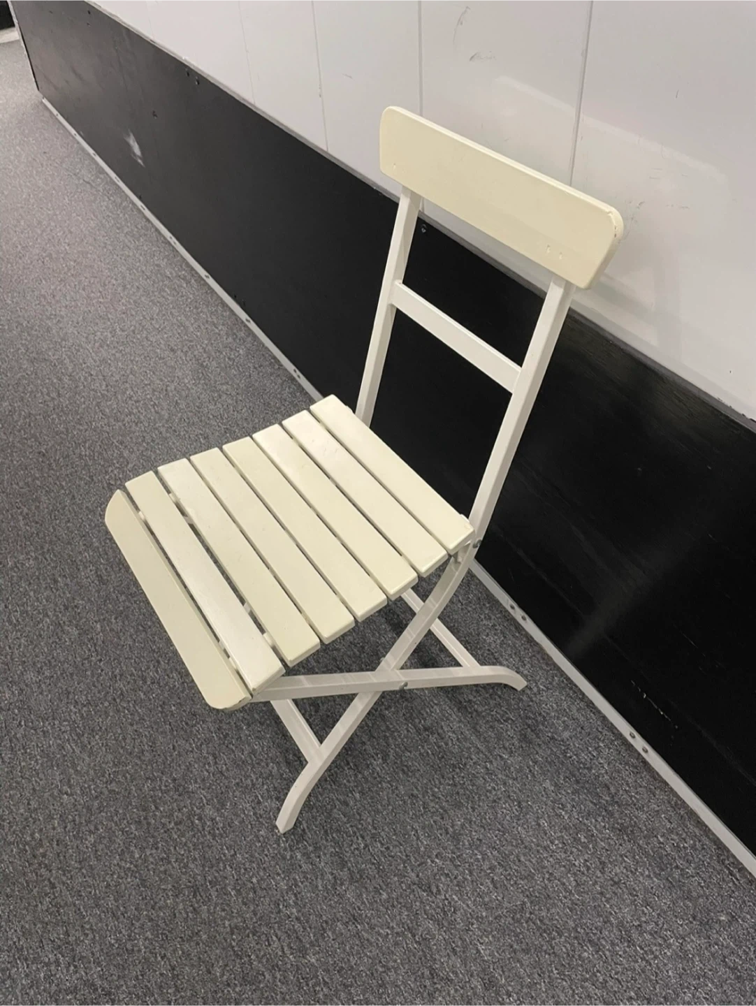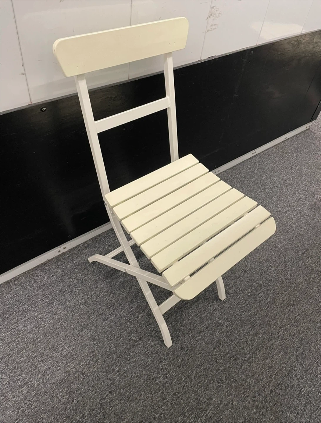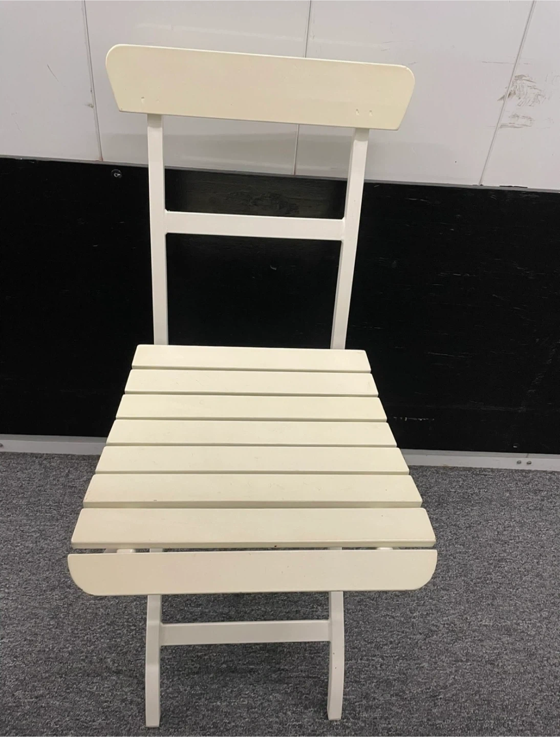 299Selling a simple and functional folding chair from IKEA. It's in great condition and perfect for small spaces or extra seating when you have guests. The chair is white and made of wood.
