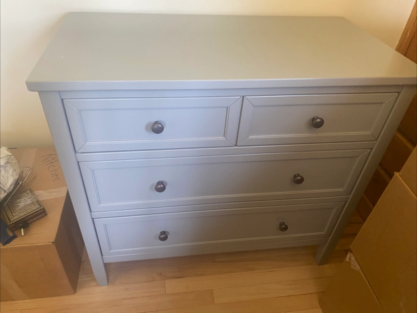 81Selling a Hemnes 4-drawer dresser from IKEA. It's in great condition and has plenty of space for storage. The dresser is a light gray color, which would be great for any room. It's sturdy and well-maintained