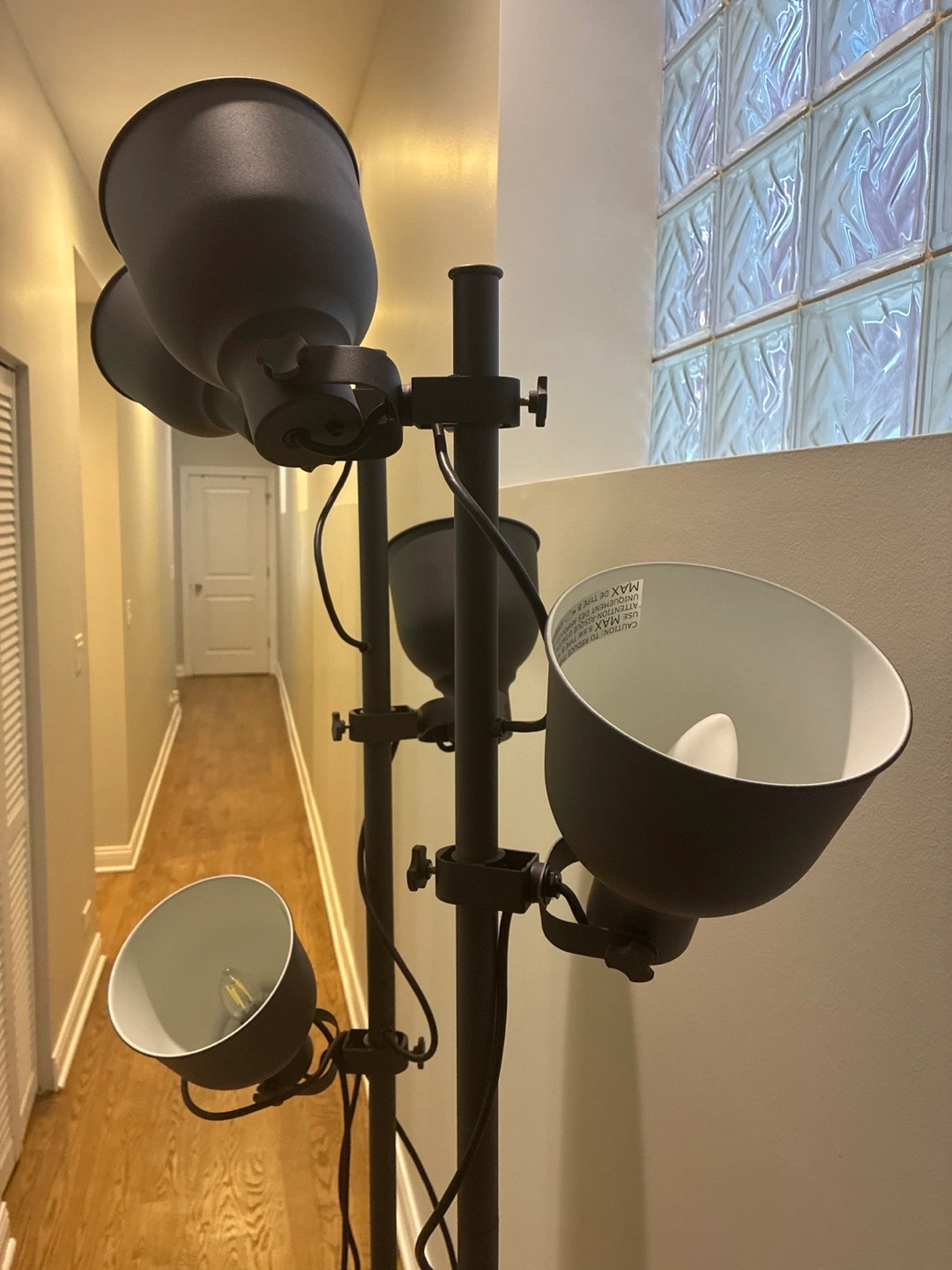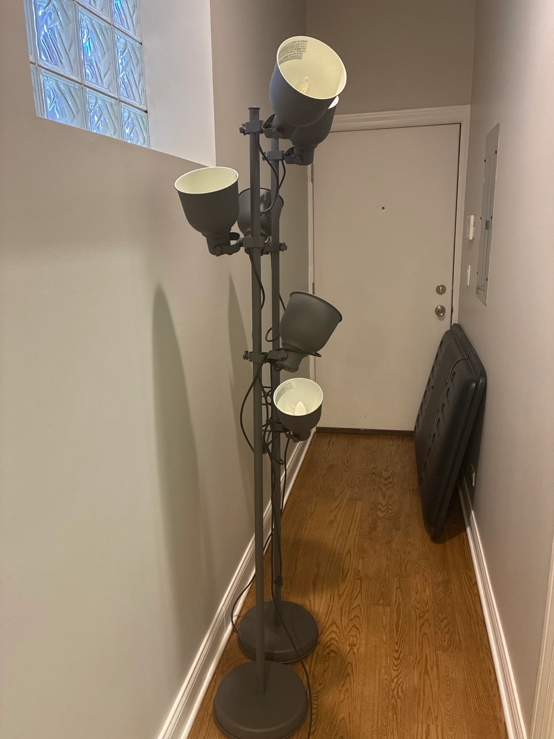 70Selling a pair of IKEA PS 2017 floor lamps in great condition! This lamp features adjustable spotlights, so you can direct the light exactly where you need it. It's perfect for adding a modern touch to any room and providing focused lighting for reading or other tasks