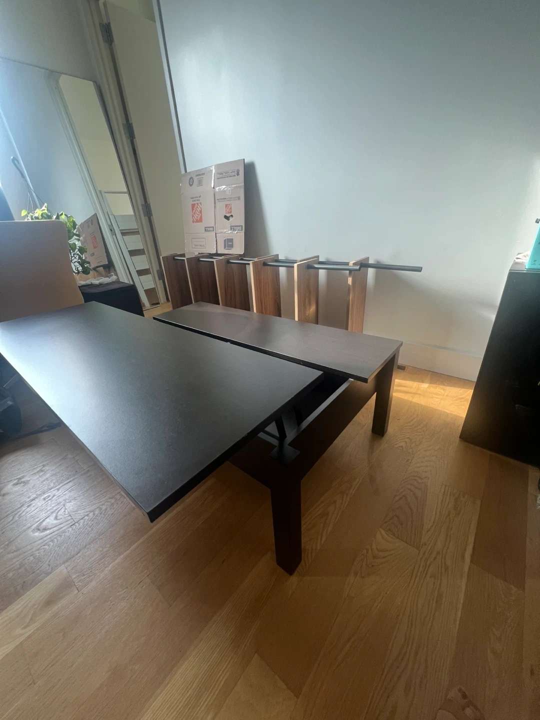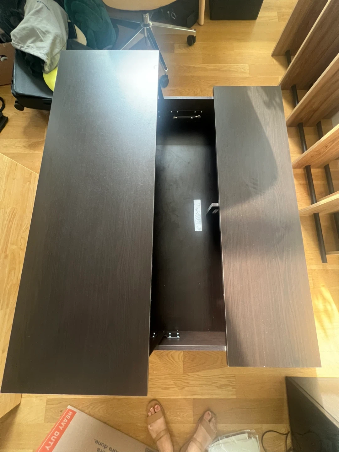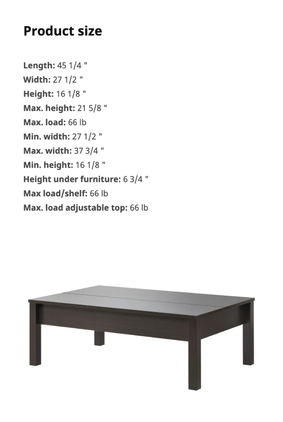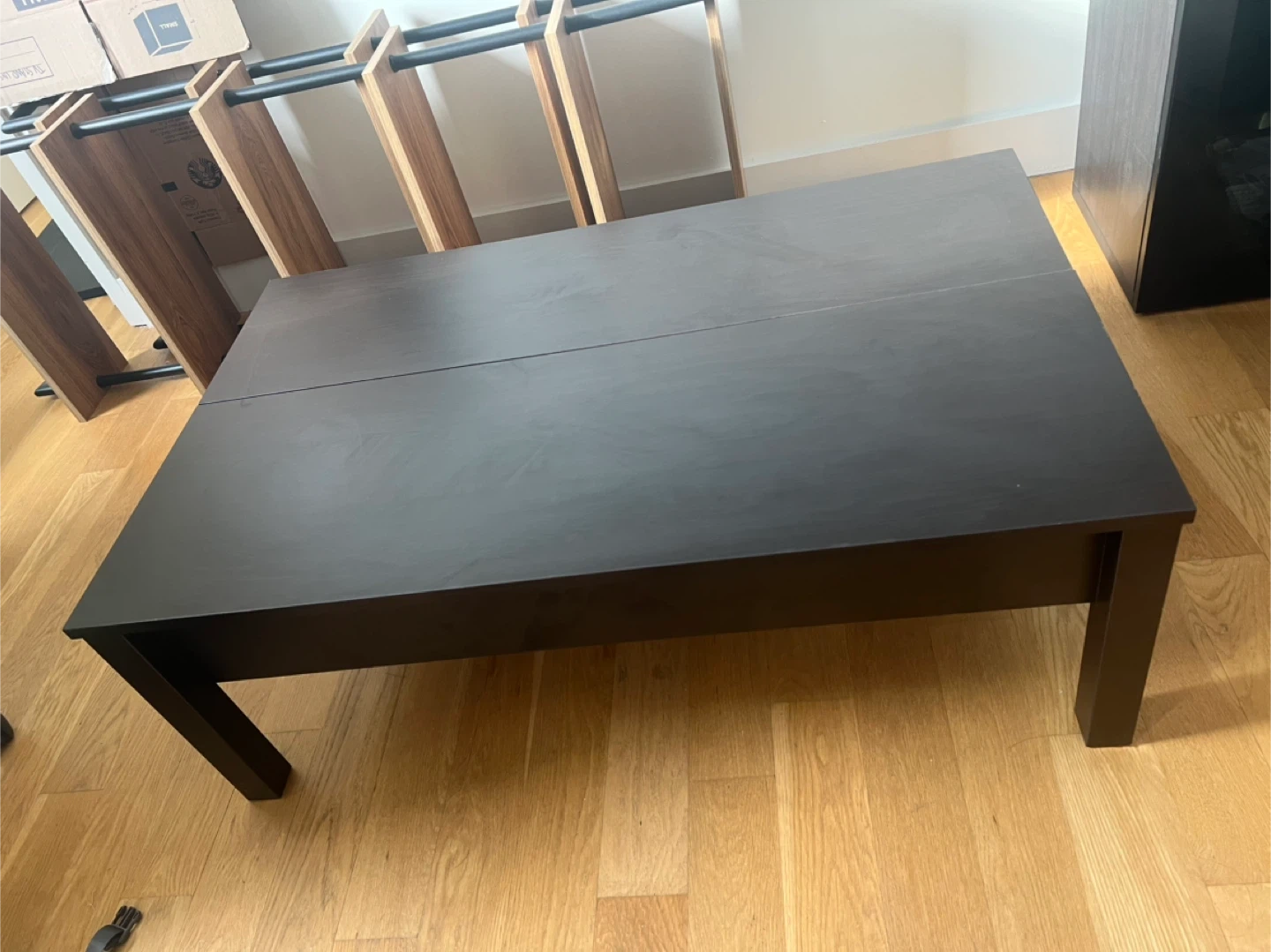 Selling a dark brown IKEA TRULSTORP coffee table, discontinued. It’s in great condition and has a lift-up top, perfect for working from home or enjoying a meal in front of the TV. The hidden storage is super handy for keeping things organized