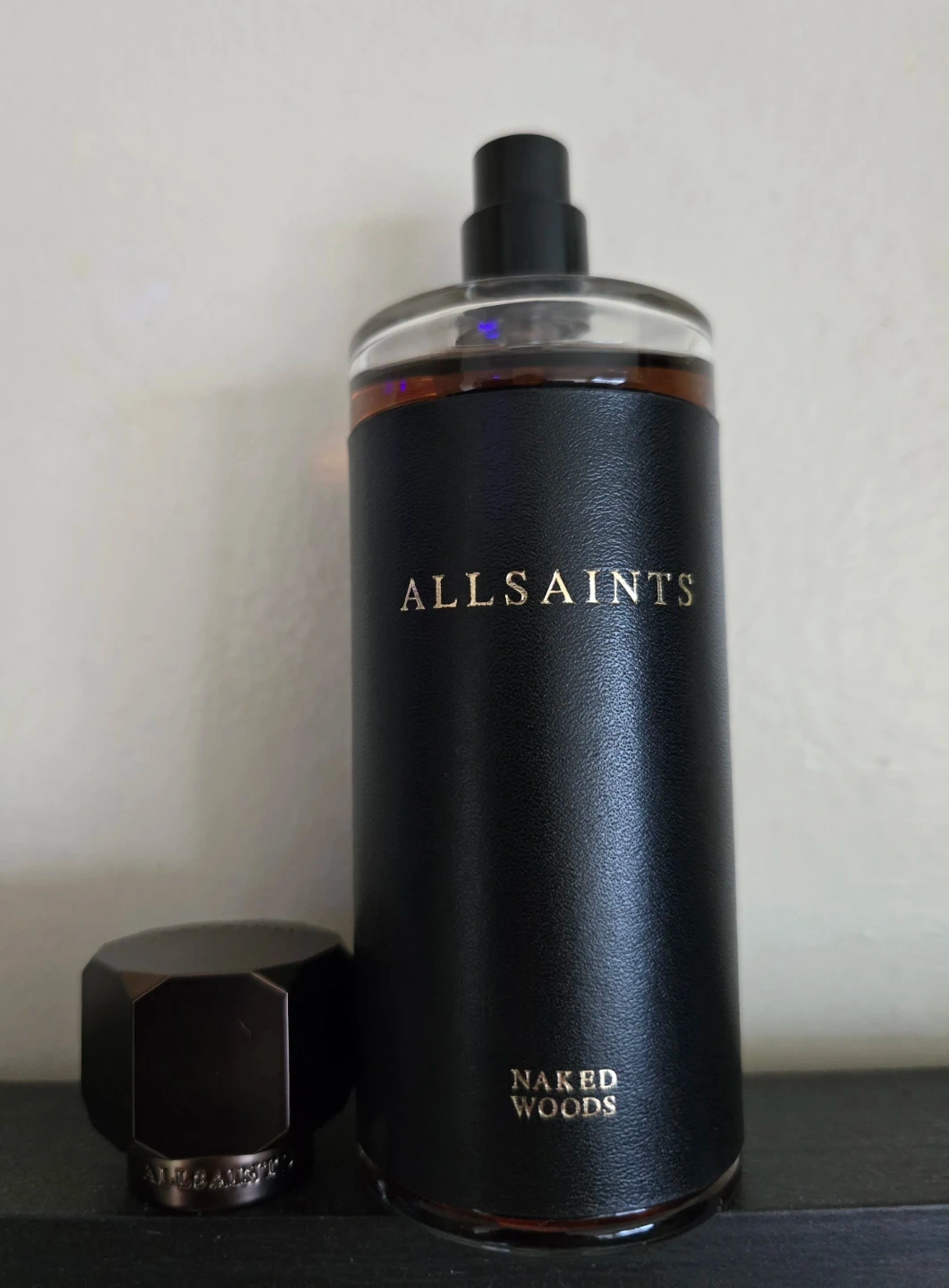 This is the AllSaints Naked Woods Eau de Parfum. It's a unique scent with a sophisticated dark bottle, great for everyday wear!