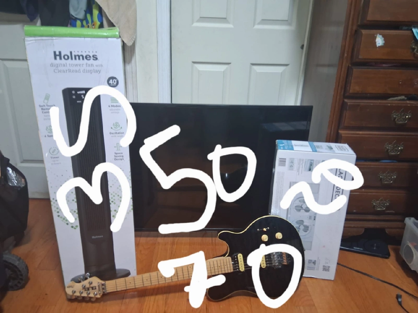 43-inch television, electric guitar, work tools, and fans all in excellent condition for sale