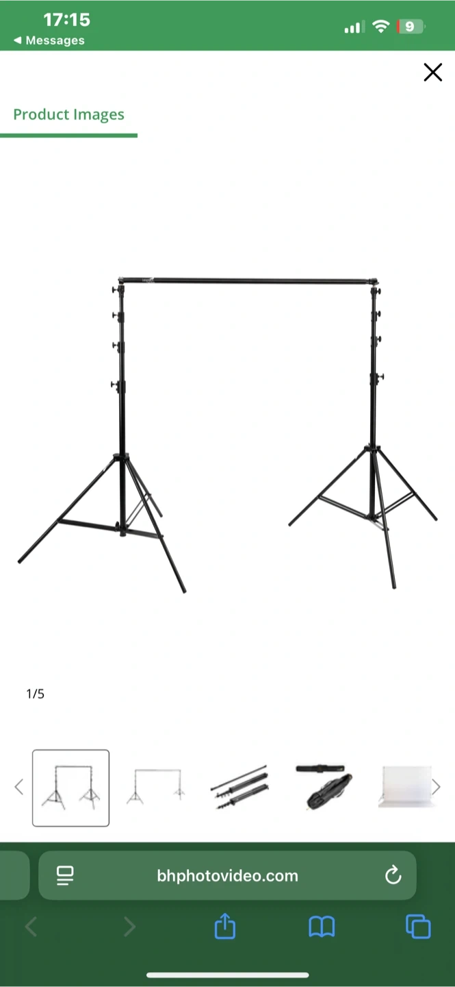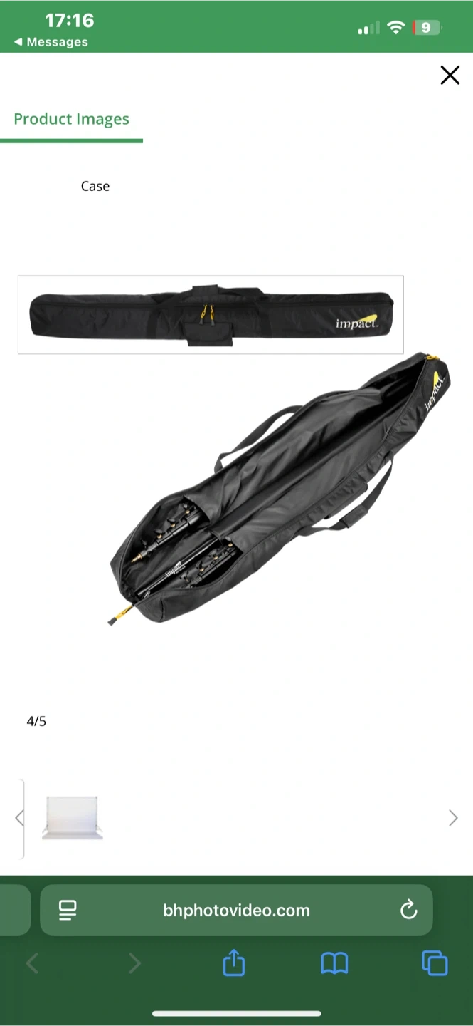 96Selling an Impact Background Support System! It appears to be in great condition and includes a case for easy transport. Perfect for photographers or anyone needing a backdrop setup . Impact Pro Backdrop Support Kit Highlights Two Light Stands, One Crossbar Extra-Wide Stable Base Maximum Height: 13.5' Supports Backdrops up to 12.9' Wide Padded Deluxe Carry Bag Features The 12.9' Pro Backdrop Support Kit from Impact is a sturdy, secure way of hanging cloth backgrounds or seamless paper rolls weighing up to 38 lb. The kit comes with two stands and a telescoping crossbar. The stands have a maximum height of 13.5' - enough to give you headroom for low-angle shooting. Their minimum height is 4.5'. The crossbar telescopes from 4.8 to 12.9' - more than enough to handle rolls of 9' seamless paper and canvas backdrops. Reversible spigots with 1/4" and 3/8" mounting posts are included, allowing you to use the stands with other gear when not using the crossbar. It all fits in a provided deluxe padded case. Adjustable Height and Width The light stands rise to 13.5' for plenty of headroom. The telescoping crossbar extends to 12.9'