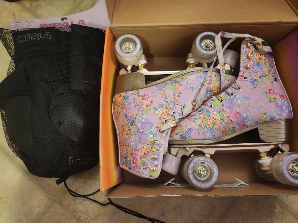 85Selling a pair of Impala Rollerskates in the Cynthia Rowley Floral design, size US 10. They come with a 3-piece safety gear pack in size L. The skates are vegan-friendly and come in the original box