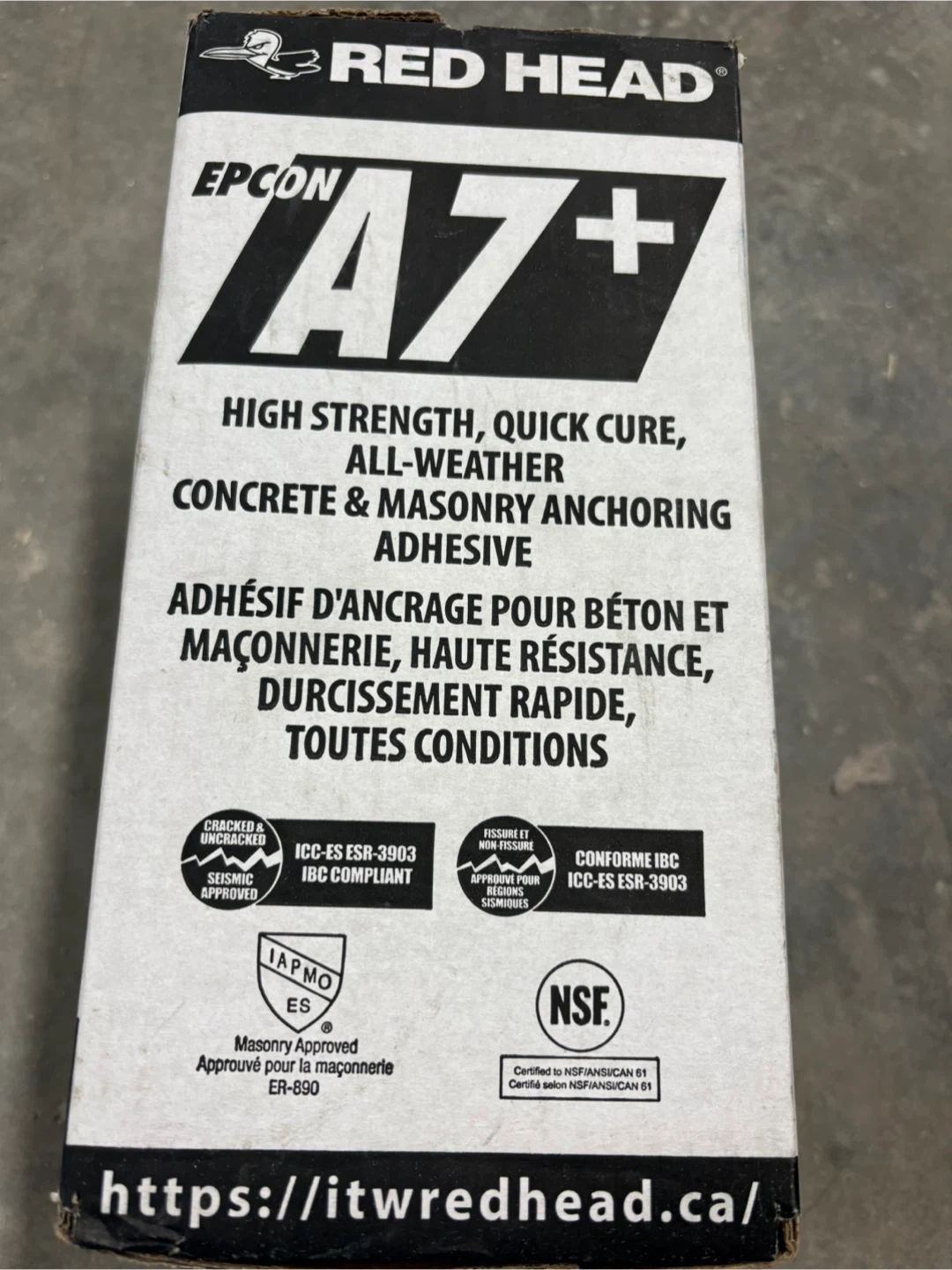 Selling a box of Red Head Epcon A7+ high-strength, quick-cure, all-weather concrete & masonry anchoring adhesive. The box contains 6 cartridges and mixing nozzles. Great for various construction and masonry projects!