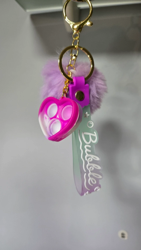 This keychain is not just a statement piece but also a functional accessory that keeps your keys organized. The small heart Pop It bring a touch of fun, and the pom-pom detail adds a soft and playful texture that's hard to resist. Proudly made by me personally, this one-size key chain is an ideal gift or a charming addition to your accessory collection.