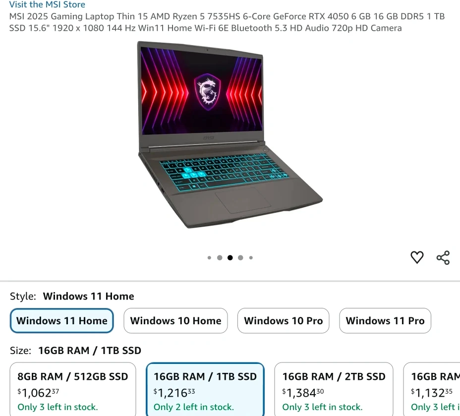 Looking for a fast and modern gaming laptop at a great price? The MSI Thin 15 (2025 model) features an AMD Ryzen 5 7535HS and GeForce RTX 4050 (6GB) โ perfect for smooth gaming, streaming, school work, and multitasking without slowdown. โก