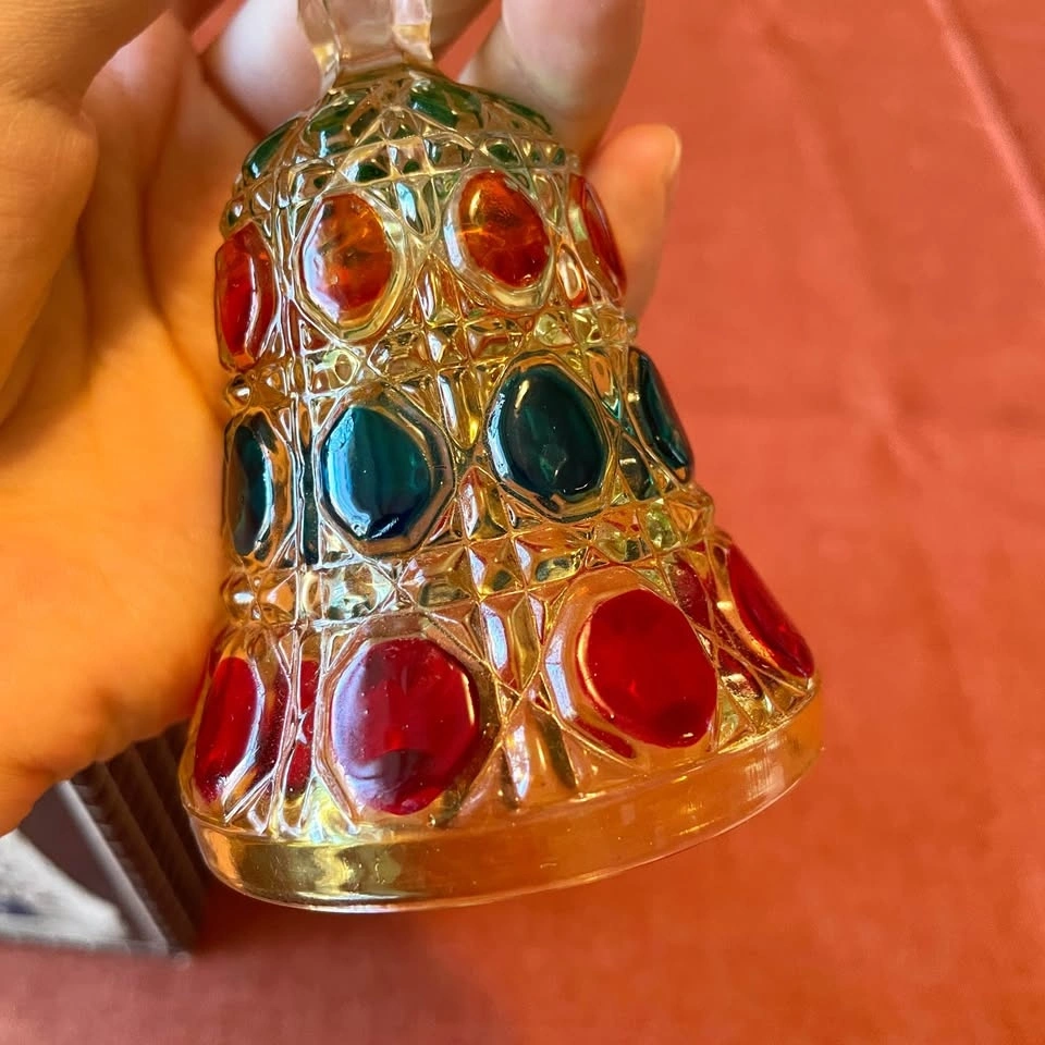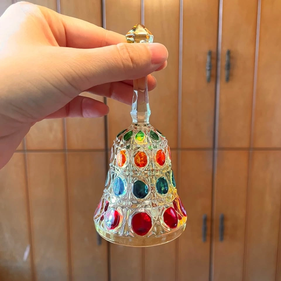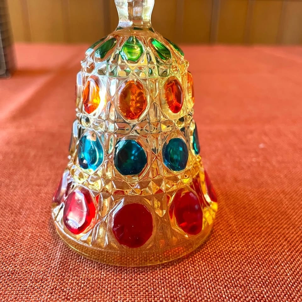Vintage 24% Lead Crystal Glass Bell with Multicolored Jeweled Design