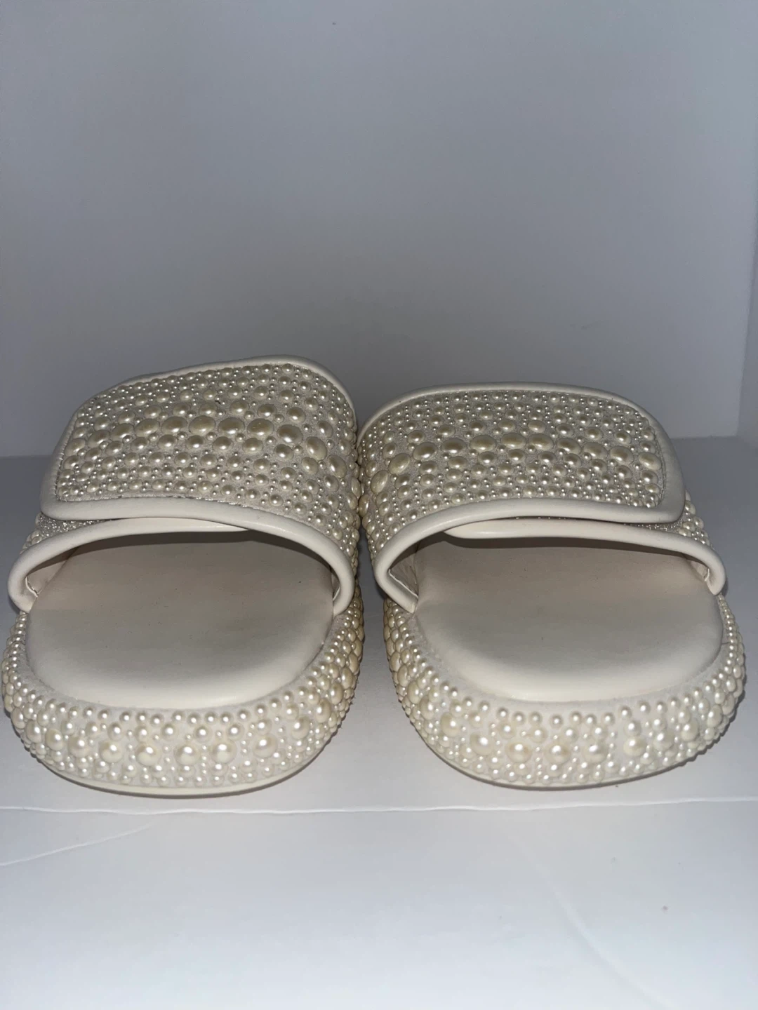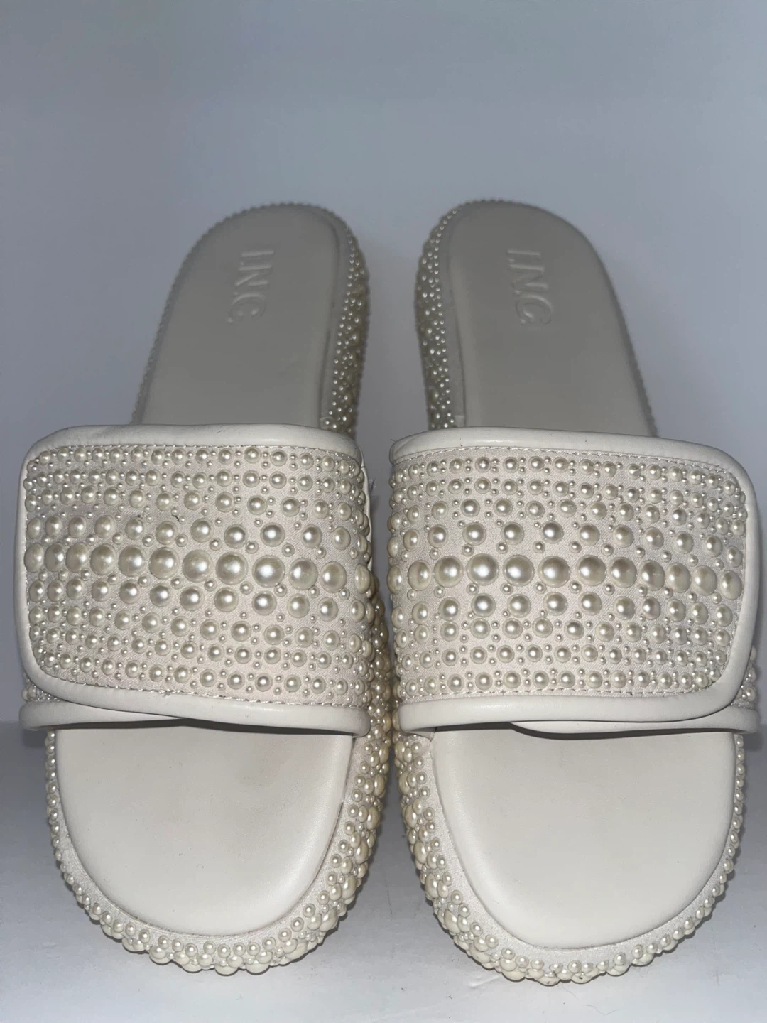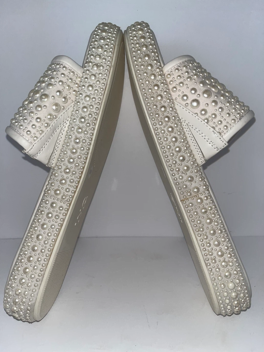 15These INC slide sandals are perfect for adding a touch of elegance to your casual outfits! They feature pearl embellishments that give them a unique and stylish look. They are in great condition and ready for a new home!