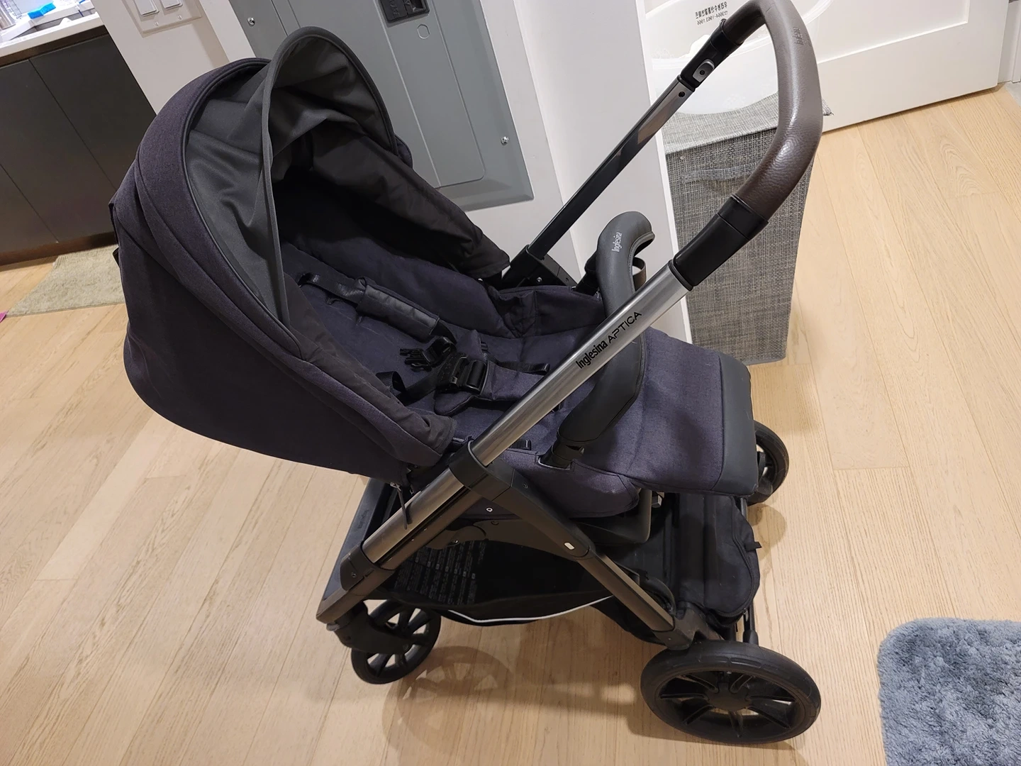 inglesina aptica full size stroller which is famous for one hand folding. bassinet and bassinet stand that baby can sleep in there.(stand is new) maxicosi car seat and adaptor that it can be used travel system. cash or venmo no return pickup only