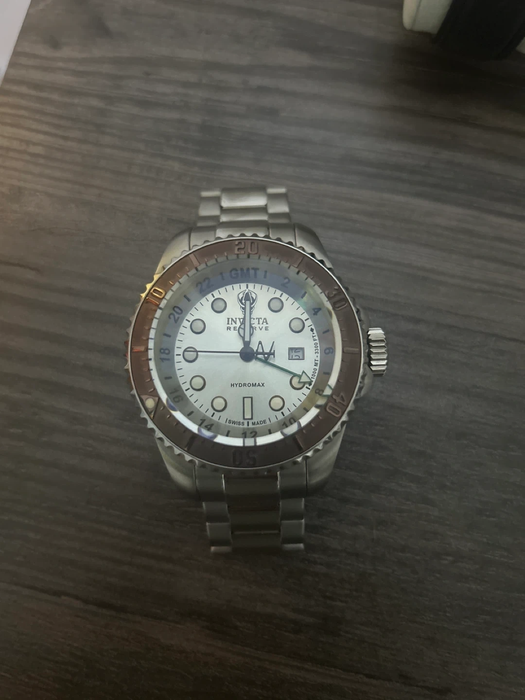 10Selling an Invicta Reserve Hydromax GMT watch. It is in good condition and has a stainless steel band. It features a GMT function and is Swiss made. Perfect for watch enthusiasts!