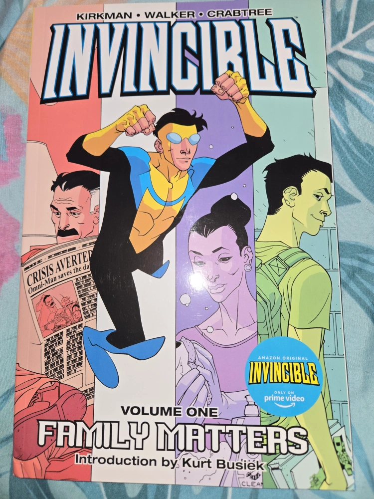 Selling Invincible Volume One: Family Matters! A great read for superhero comic fans. This is the first volume in the series by Kirkman, Walker, and Crabtree.